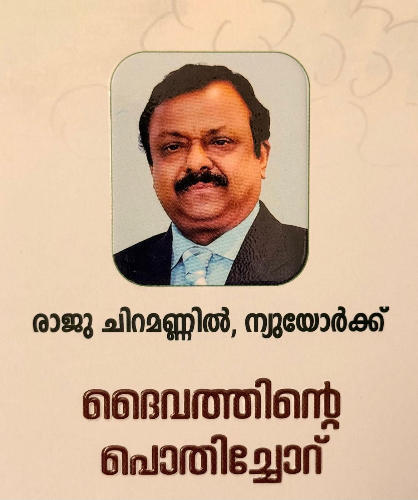 ന്യൂയോര്ക്ക് : കഴിഞ്ഞ നാലു പതിറ്റാണ്ടുകളായി ന്യൂയോര്ക്കില് താമസിക്കുന്ന രാജു ചിറമണ്ണില്, തന്റെ തിരഞ്ഞെടുത്ത ഇരുപതു കഥകള് ഉള്പ്പെടുന്ന 'ദൈവത്തിന്റെ പൊതിച്ചോറ്' എന്ന കഥാസമാഹാരം ഏപ്രില് 19-ാം തീയതി ശനിയാഴ്ച ന്യൂയോര്ക്കിലെ, 406 കിംഗ് സ്ട്രീറ്റ്, പോര്ട്ട് ചെസ്റ്ററില് വെച്ച് ക്ഷണിക്കപ്പെട്ട സദസ്സിന്റെ ആഭിമുഖ്യത്തില് പ്രകാശനം നടത്തപ്പെടുന്നു.