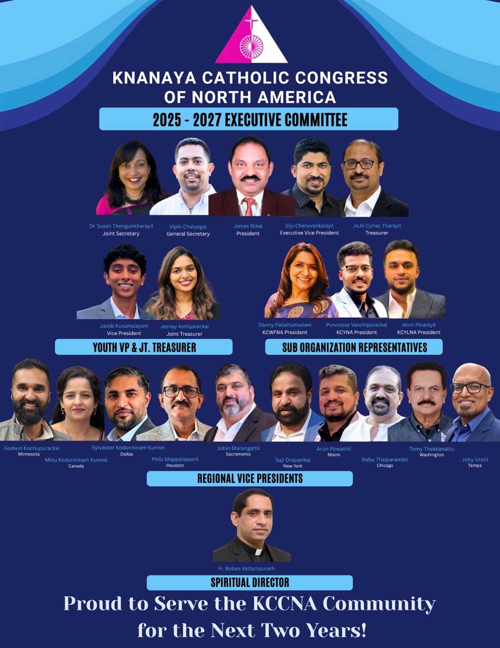 ഇവരെ കൂടാതെ റീജിയണൽ വൈസ്സ് പ്രസിഡണ്ടുമാരായ ഫിലിപ്സ് മാത്യു മാപ്പളശേരിൽ (ഹൂസ്റ്റൺ), അരുൺ ജോർജ് പൗവ്വത്തിൽ (മയാമി ), സിൽവസ്റ്റർ സിറിയക്ക് കൊടുന്നിനാംകുന്നേൽ (ഡാളസ്), ബാബു തൈപ്പറമ്പിൽ (ചിക്കാഗോ), സജി ജോസഫ് ഒരപ്പാങ്കൽ (ന്യൂയോർക്ക് ), ഗോഡ്വിൻ കൊച്ചുപുരക്കൽ (മിനസോട്ട), ടോമി ജോസഫ് തെക്കനാട്ട് (വാഷിംഗ്ടൺ ), ജോ മാനുവൽ മരങ്ങാട്ടിൽ (സാക്രമെന്റോ ), ജോബി ഫിലിപ്പ് ഊരാളിൽ (ഫ്ലോറിഡ), മിന്നു എബ്രഹാം കൊടുന്നിനംകുന്നേൽ (കാനഡ) , വിമൻസ് ഫോറം നാഷണൽ പ്രസിഡണ്ട് ഡാനി പല്ലാട്ടുമഠം (ഡാളസ്), KCYL പ്രസിഡണ്ട് ആൽവിൻ പിണർക്കയിൽ (ചിക്കാഗോ) , യുവജനവേദി നാഷണൽ പ്രസിഡണ്ട് പുന്നൂസ് വഞ്ചിപുരക്കൽ (ടാമ്പ), സ്പിരിച്യുൽ ഡയറക്ടർ റെവ. ഫാ.ബോബൻ വട്ടംപുറത്ത് (സാൻ അന്റോണിയ വികാരി) എന്നിവരടങ്ങിയതാണ് കെ.സി.സി.എൻ.എ എക്സിക്യൂട്ടീവ് കമ്മറ്റി .