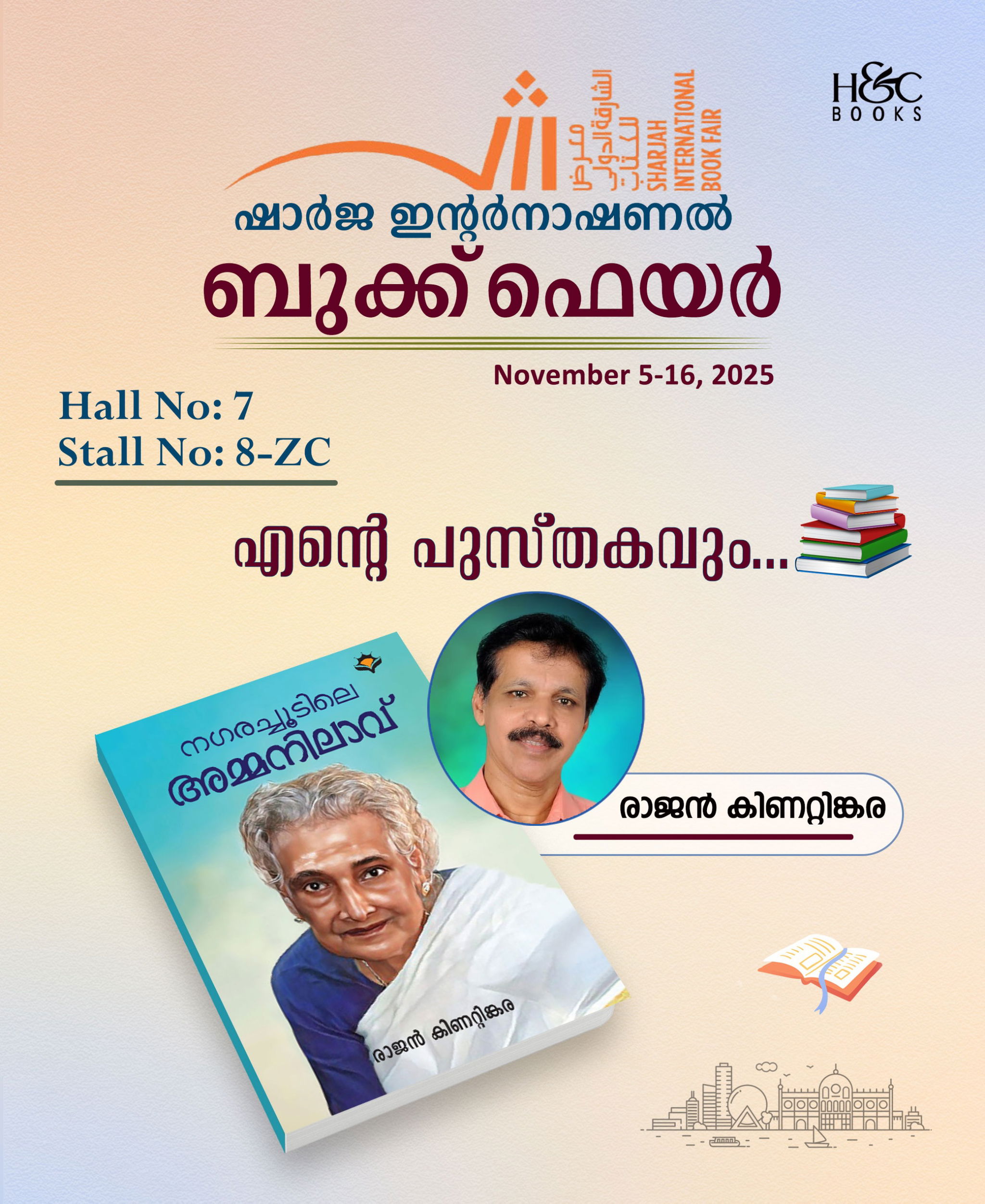 നവംബര് 5 മുതല് 16 വരെ ഷാര്ജയില് വച്ചു നടക്കുന്ന ലോക പ്രശസ്തമായ ഇന്റര്നാഷണല് ബുക് ഫെയര് 2025 ല് മുംബൈ എഴുത്തുകാരന് രാജന് കിണറ്റിങ്കരയുടെ *നഗരച്ചുടിലെ അമ്മനിലാവ്* എന്ന നോവലും. മുംബൈ മഹാനഗരത്തിന്റെ ഉള്ച്ചൂടില് മലമക്കാവ് എന്ന തന്റെകൊച്ചു ഗ്രാമത്തേയും സ്നേഹത്തണലായ അമ്മയേയും വൈകാരികമായി വരച്ചിട്ട രാജന്റെ നോവല് ആസ്വാദക പ്രശംസ പിടിച്ചു പറ്റിയിരുന്നു.