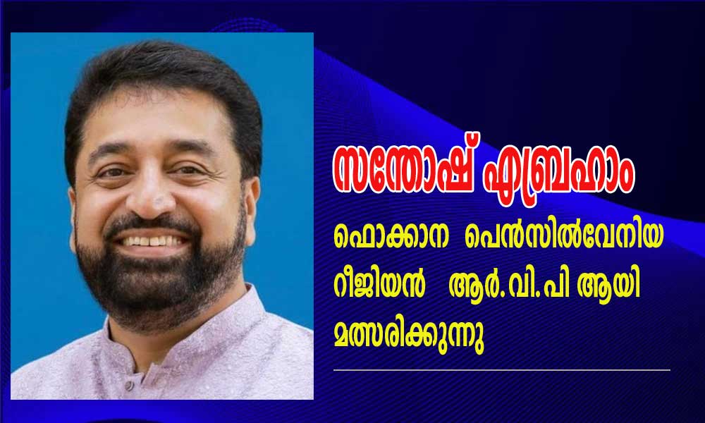 ഫിലാഡൽഫിയ: വ്യത്യസ്ത രംഗങ്ങളിൽ വ്യക്തിമുദ്ര പതിപ്പിച്ച സന്തോഷ് എബ്രഹാം ഫൊക്കാനയുടെ പെൻസിൽവേനിയ റീജിയൻ ആർ.വി.പി ആയി മത്സരിക്കുന്നു