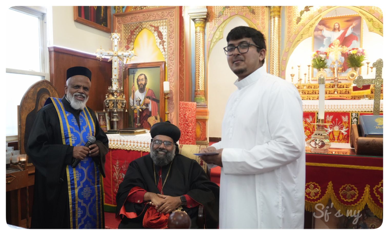 ഇടവകയിൽ പ്രശംസനീയമായ രീതിയിൽ പ്രവർത്തിക്കുന്ന യൂത്ത് സെക്രട്ടറി ആൽവിൻ സോട്ടർ പ്രത്യേക പാരിതോഷികം മെത്രാപ്പോലീത്തയിൽ നിന്നും ഏറ്റുവാങ്ങി.
