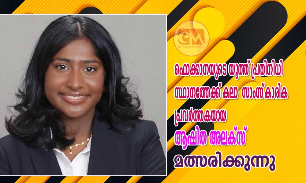 നർത്തകി, സംഘാടക, സന്നദ്ധ പ്രവർത്തക, പ്രാസംഗിക, സ്റ്റുഡന്റ് ലീഡർ എന്നീ നിലകളിൽ തനതായ വ്യക്തിമുദ്ര പതിപ്പിച്ച ആഷിത അലക്സ്, കോളേജിലെ വിവിധ കേന്ദ്രങ്ങളുടെ പ്രവർത്തനങ്ങൾ ഏകോപിപ്പിക്കുന്നതിലും പുതിയ വിദ്യാർത്ഥികൾക്ക് നല്ല മൂല്യങ്ങൾ പകർന്നു നൽകുന്നതിലും സജീവ സാന്നിധ്യമാണ്. സ്റ്റുഡന്റ് ലീഡർ എന്ന നിലയിൽ സഹപാഠികളിലും അധ്യാപകരിലും നിന്ന് പ്രത്യേക പ്രശംസ നേടിയിട്ടുള്ള ആഷിത, ഫൊക്കാനയിലെ യൂത്ത് പ്രവർത്തനങ്ങൾ കൂടുതൽ ഫലപ്രദമാക്കാനും യുവാക്കളെ സംഘടനയിലേക്ക് കൂടുതൽ ആകർഷിക്കാനും ലക്ഷ്യമിട്ടുള്ള ദൗത്യവുമായി രംഗത്തിറങ്ങുകയാണ്.