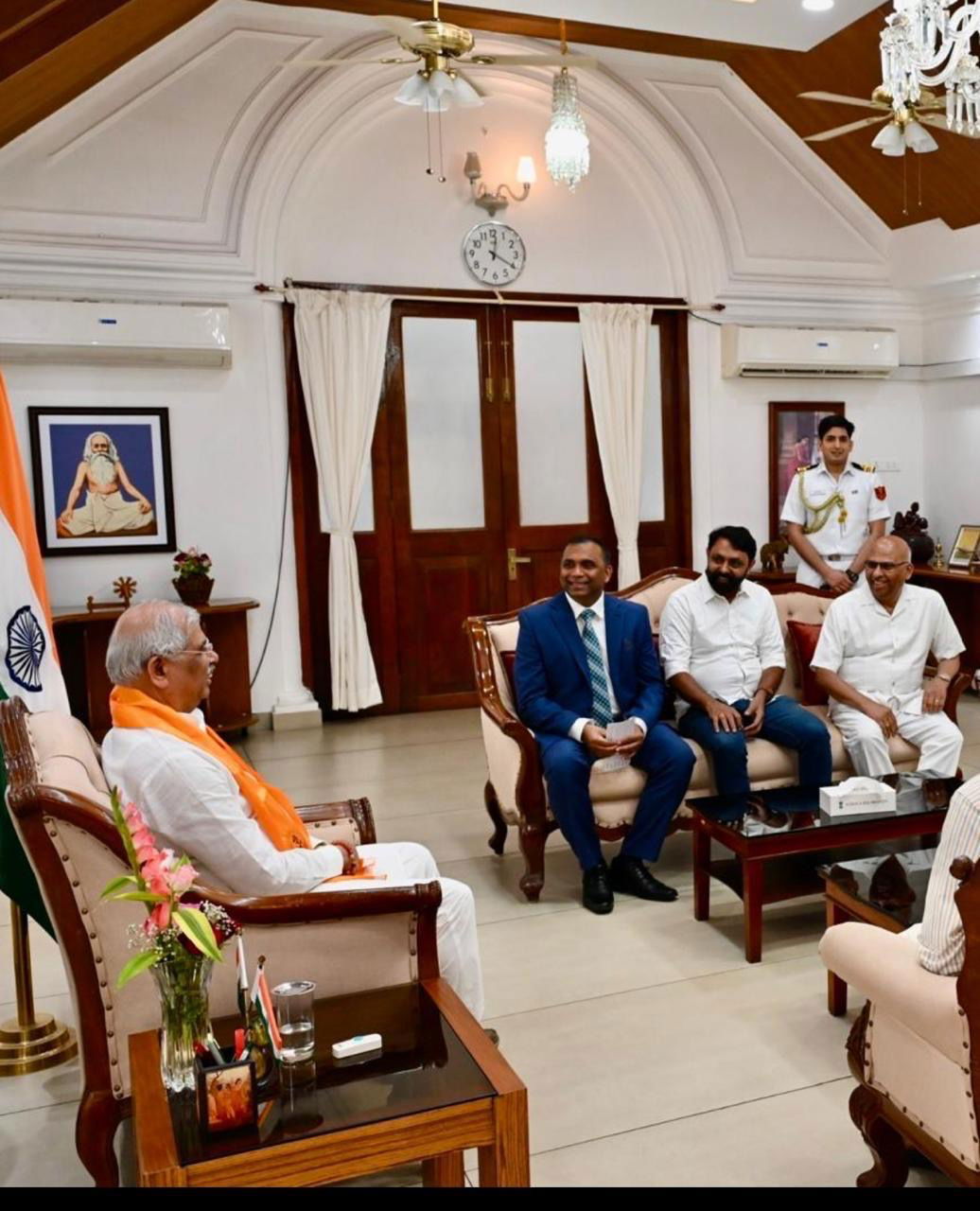ഫൊക്കാന പ്രസിഡന്റ് സജിമോന് ആന്റണി രാജ് ഭവനില് എത്തി ഗവര്ണ്ണരെ ക്ഷണിക്കുകയും ഫൊക്കാനയുടെ പ്രവര്ത്തനങ്ങളെ പറ്റി വിവരിക്കുകയും ചെയ്തു. സജിമോന് ആന്റണിയോടൊപ്പം മുന് പ്രസിഡന്റ് മാധവന് ബി നായര് , കേരളാ കോര്ഡിനേറ്റര് സുനില് പാറക്കല് എന്നിവരും പങ്കെടുത്തു.