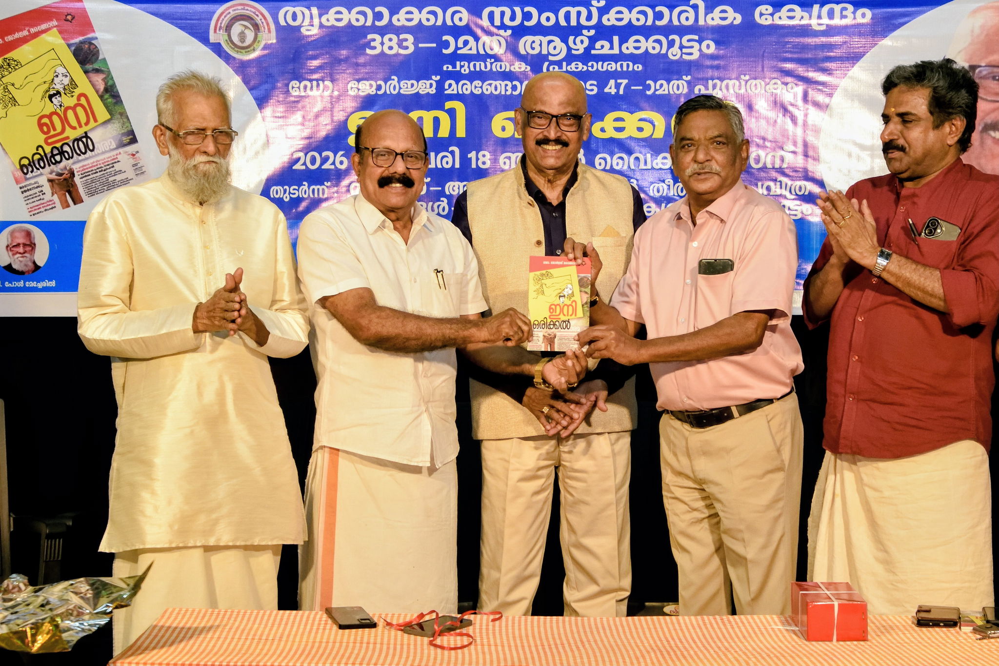 കൊച്ചി. ഡോ. ജോര്ജ് മരങ്ങോലിയുടെ 47 - മത് പുസ്തകം ' ഇനി ഒരിക്കല്,' (ചെറുകഥാസമാഹാരം) തൃക്കാക്കര സാംസ്കാരിക കേന്ദ്രത്തിന്റെ 383- മത് ആഴ്ചക്കൂട്ടത്തില്, ഓണം പാര്ക്കില് വച്ച് പ്രകാശനം ചെയ്തു. മുന് CIAL ഡയറക്ട്ടറും കെ.എസ്.ഇ.ബി. ഒമ്ബഡ്സ്മാനും, സാംസ്കാരിക കേന്ദ്രം പ്ര സിഡന്റുമായ എ. സി. കെ. നായര് അദ്ധ്യക്ഷനായ ചടങ്ങില് മുന് സംസ്കൃത യൂണിവേഴ്സിറ്റി വൈസ് ചാന്സിലര് ഡോ. എം. സി. ദിലീപ്കുമാര്, മുന് കേരള സ്റ്റേറ്റ് അഡിഷണല് സെക്രട്ടറി കെ. കെ. വിജയകുമാര് IAS ന് ആദ്യ പ്രതി നല്കി പ്രകാശനം ചെയ്തു.