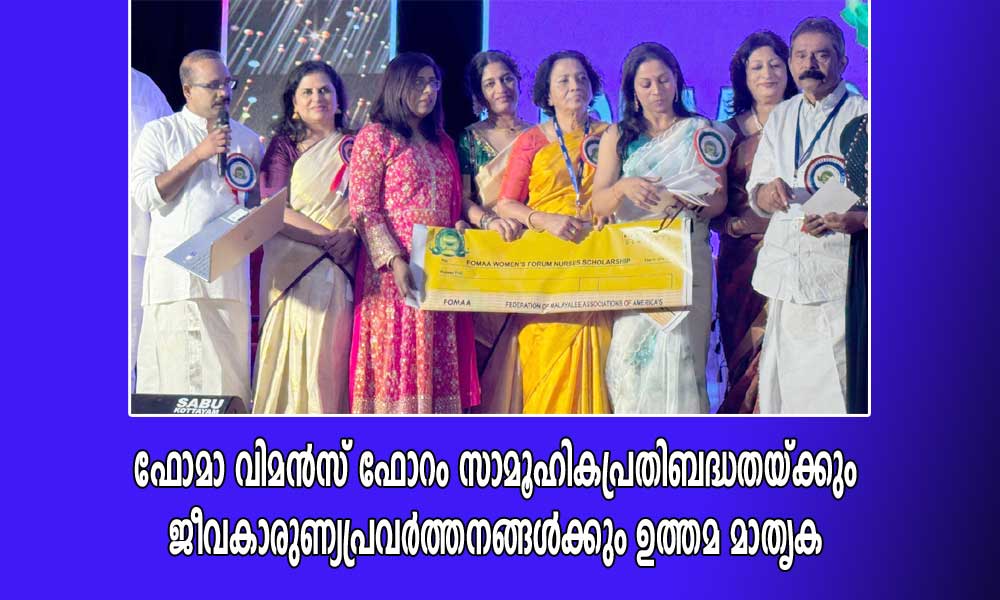 ഫോമാ വിമൻസ് ഫോറം പ്രതിനിധികളായ ജൂലി ബിനോയ്, ഗ്രേസി ജെയിംസ്, സ്വപ്ന സജി, മഞ്ജു പിള്ള എന്നിവരുടെ സാന്നിധ്യം ശ്രദ്ധേയമായി. വിമൻസ് ഫോറം ട്രഷറർ ജൂലി ബിനോയി വിമൻസ്ഫോറത്തിന്റെ പ്രവർത്തങ്ങൾക്ക് ഫോമാ എക്സിക്യൂട്ടീവ് കമ്മിറ്റിയും, കേരളത്തിലെ സാമൂഹിക-സാംസ്കാരികരംഗങ്ങളിലെ പ്രമുഖരും നൽകിയ പിന്തുണയ്ക്ക് അകൈതവമായ നന്ദി രേഖപ്പെടുത്തി. വിമൻസ് ഫോറത്തിന്റെ ജനോപകാരപ്രദമായ പ്രവർത്തനങ്ങൾ കേരളത്തിലും അമേരിക്കയിലും സജീവമായി തുടരുന്നതിൽ വളരെ സന്തോഷവും അഭിമാനവും ഉണ്ടെന്നു വിമൻസ് ഫോറം ചെയർ പേഴ്സൺ സ്മിത നോബിൾ അറിയിച്ചു.