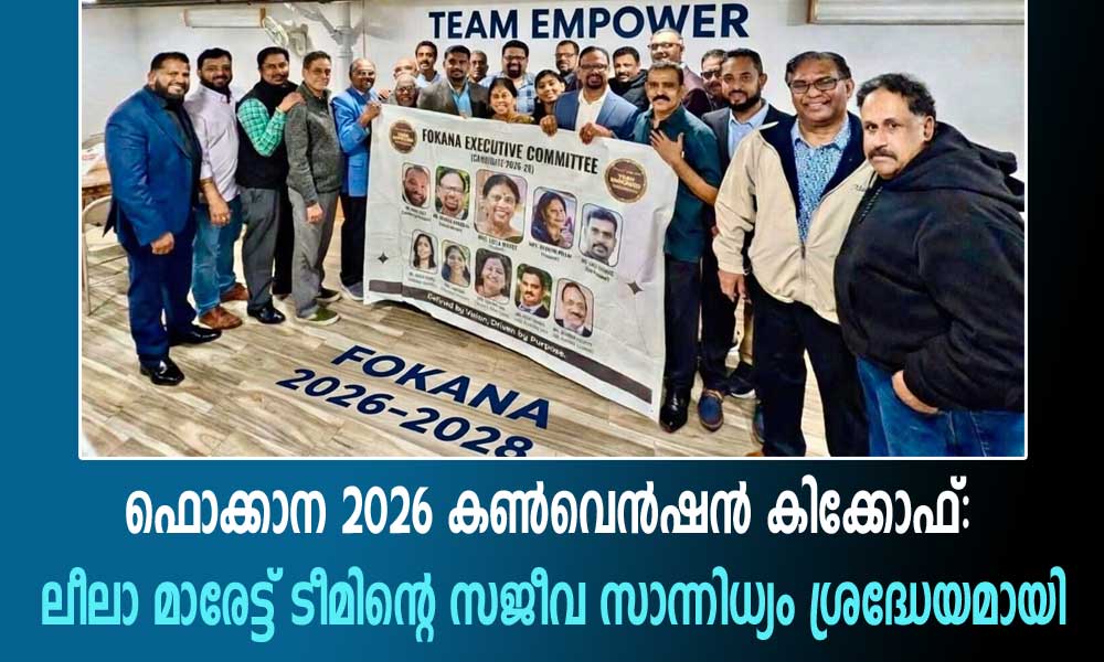 ഫെഡറേഷൻ ഓഫ് കേരള അസോസിയേഷൻസ് ഇൻ നോർത്ത് അമേരിക്ക (FOKANA) 2026 കൺവെൻഷനെ മുന്നോടിയായി പെൻസിൽവാനിയയിലെ MAP Indian Community Centerൽ മാർച്ച് 7 ശനിയാഴ്ച വൈകുന്നേരം നടത്തിയ കിക്കോഫ് മീറ്റിംഗ് മലയാളി സമൂഹത്തിൽ ശ്രദ്ധേയമായി.
