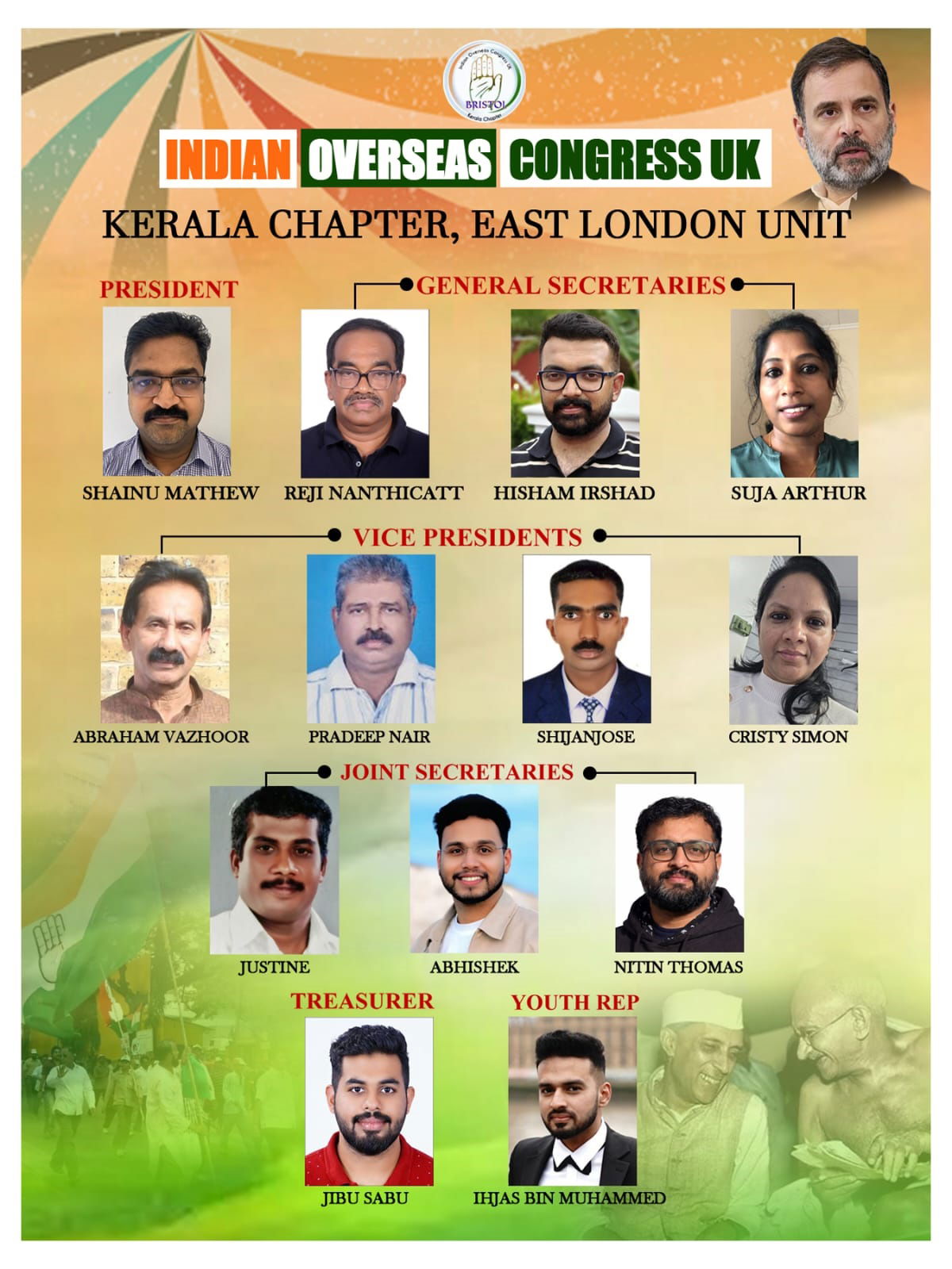 യോഗത്തില് ഇന്ത്യന് ഓവര്സീസ് കോണ്ഗ്രസ് യുകെ (കേരള ചാപ്റ്റര്) സെക്രട്ടറി അഷ്റഫ് അബ്ദുള്ള ഈസ്റ്റ് ലണ്ടന് യൂണിറ്റിന് പുതിയ കമ്മിറ്റി രൂപീകരിക്കാന് നിര്ദേശം വെക്കുകയും തുടര്ന്ന് അംഗങ്ങള് പുതിയ ഭാരവാഹികളെ തിരഞ്ഞെടുത്തു.