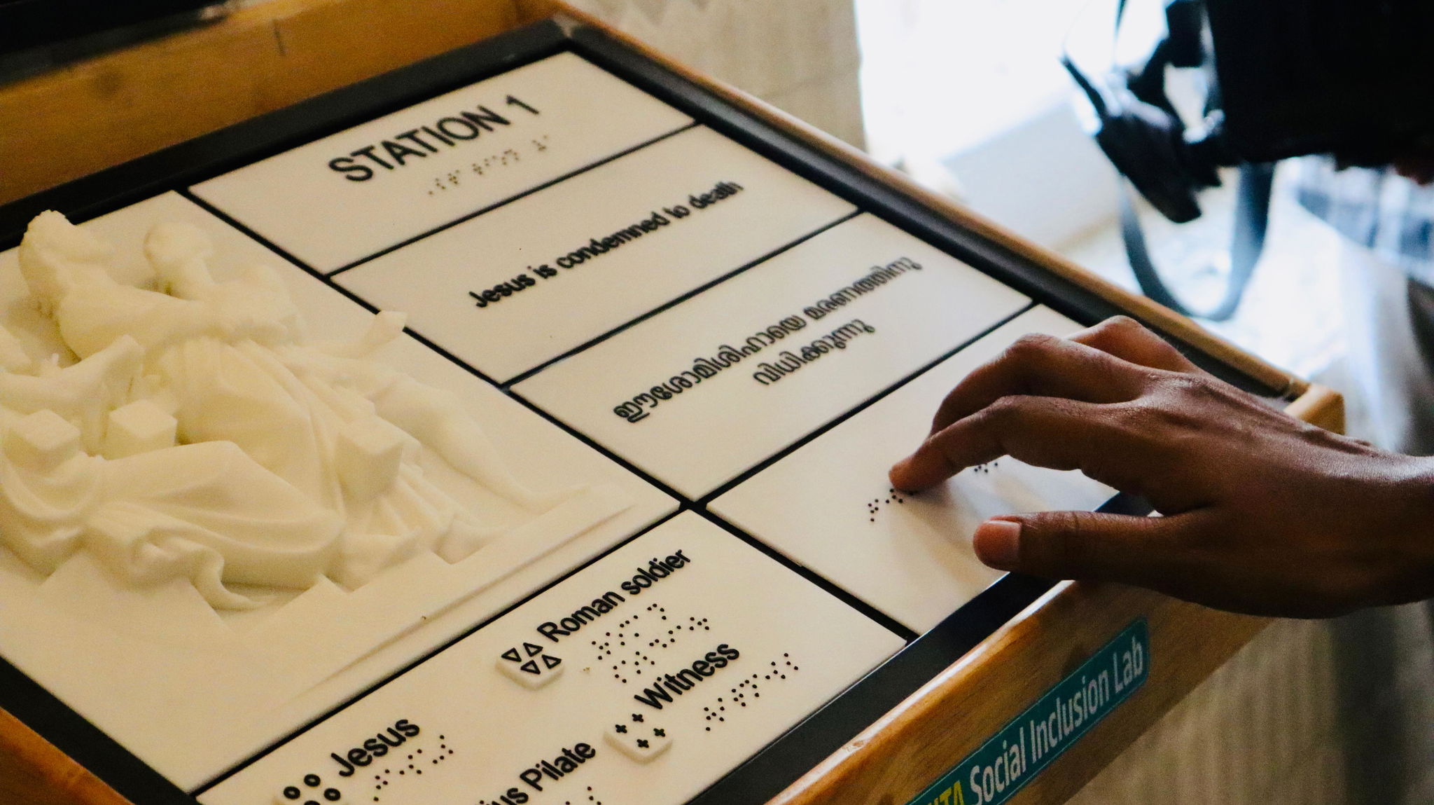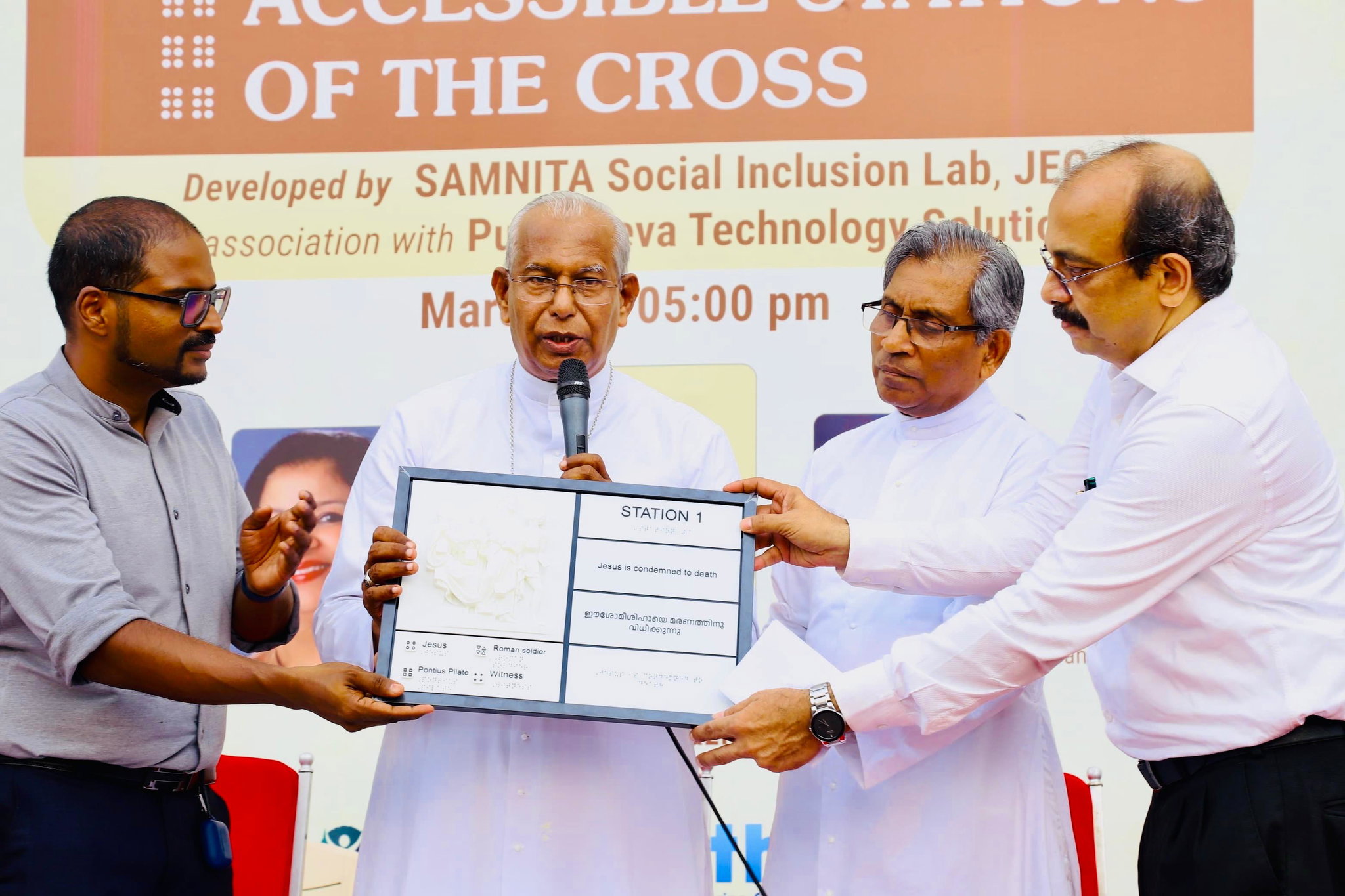 കേരളത്തിലെ പ്രമുഖ എന്ജിനീയറിങ് സ്ഥാപനമായ ജ്യോതി എന്ജിനീയറിങ് കോളേജിലെ സംനിത (SAMNITA) സോഷ്യല് ഇന്ക്ലൂഷന് ലാബും പുനര്ജീവ ടെക്നോളജി സൊല്യൂഷന്സ് എന്ന സ്റ്റാട്ടപ്പും ചേര്ന്നാണ് ഈ നൂതന പദ്ധതി യാഥാര്ത്ഥ്യമാക്കിയത്. സംനിതയുടെ ഫൗണ്ടര് കൂടിയായ റോബിന് ടോമി കാഴ്ച പരിമിതരായ സമൂഹത്തെയും വിദ്യാര്ഥികളെയും ഉള്ക്കൊള്ളിച്ചാണ് ഈ ആശയം പ്രാവര്ത്തികമാക്കിയിട്ടുള്ളത്. ആര്ട്ടിഫിഷ്യല് ഇന്റലിജന്സിന്റെ സഹായത്തോടെ കൃത്യമായി രൂപകല്പ്പന ചെയ്ത ത്രിമാന ചിത്രങ്ങളാണ് ഇതിന്റെ പ്രധാന ആകര്ഷണം. ഓരോ സ്റ്റേഷനിലും വിരലുകള് കൊണ്ട് തൊട്ടറിയാവുന്ന രീതിയിലുള്ള ടാക്റ്റൈല് റിലീഫുകൾ യജ്ജീകരിചിട്ടുണ്ട്. ഇതിനുപുറമെ, കുരിശിന്റെ വഴിയുടെ ഓരോ ഭാഗത്തും നല്കിയിരിക്കുന്ന ക്യുആര് കോഡുകള് സ്കാന് ചെയ്യുന്നതിലൂടെ മലയാളത്തിലും ഇംഗ്ലീഷിലും ആത്മീയ വിവരണങ്ങള് ശ്രവിക്കാനും സാധിക്കും. കാഴ്ചപരിമിതര്ക്ക് മറ്റൊരാളുടെ സഹായമില്ലാതെ തന്നെ ഓരോ സ്റ്റേഷനിലേക്കും എത്തുന്നതിനായി പ്രത്യേക ടാക്റ്റൈല് പാതകളും ബ്രെയില് ലിപിയിലുള്ള നിര്ദ്ദേശങ്ങളും പള്ളി അങ്കണത്തില് ഒരുക്കിയിട്ടുണ്ട്.