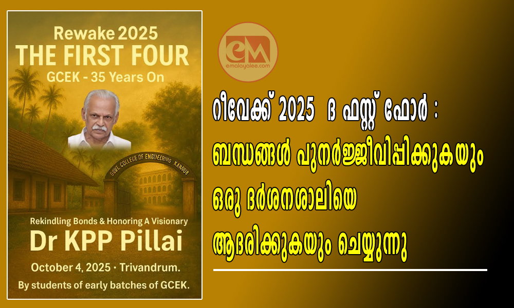തിരുവനന്തപുരം: ഗവണ്മെന്റ് കോളേജ് ഓഫ് എഞ്ചിനീയറിംഗ്, കണ്ണൂർ (GCEK) ന്റെ പ്രഥമ ബാച്ചുകളായ (1986–1990) വിദ്യാർത്ഥികൾ, റീവേക്ക് 2025 – ദ ഫസ്റ്റ് ഫോർ എന്ന പേരിൽ 2025 ഒക്ടോബർ 4-ന് തിരുവനന്തപുരം ഒന്നിക്കുന്നു. ഈ സ്മരണാഘോഷം GCEKയുടെ 35ാം വാർഷികവും കോളേജിന്റെ പ്രാരംഭകാലത്തെയും, അതിന്റെ മഹത്തായ നേതാവായ ഡോ. കെ. പി. പി. പിള്ളയെയും ആദരിക്കുന്ന ഹൃദയസ്പർശിയായ നിമിഷവുമാണ്.