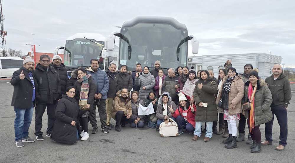 നവംബർ മൂന്നാം തിയതിൽ ഞങ്ങൾ 35 അംഗംങ്ങൾ ഉൾപ്പെടുന്ന മലയാളി സംഗം വൈകുന്നേരം യു കെയിൽ നിന്നു പുറപ്പെട്ടു രണ്ടരമണിക്കൂർ യാത്ര ചെയ്തു ഐസ് ലാൻഡിന്റെ തലസ്ഥാനമായ റെയ്ക്കാവിക്കിലെ Keflavík Airport ൽ എത്തി അവിടെനിന്നും ഒരു മണിക്കൂർ യാത്രചെയ്തു തലസ്ഥാനമായ കെർക്കവികിലേ ഹോട്ടലിൽ എത്തിയപ്പോൾ ഏകദേശം രാത്രി 9 മണിയായിരുന്നു വഴിനീളെ റോഡിൽ വീണുകിടന്ന ഐസ് കൂനകൾ കാണാമായിരുന്നു, കഴിഞ്ഞദിവങ്ങളിൽ ശക്തമായ ഐസ് വീഴ്ച യിൽ ഗതാഗതം തടസപ്പെട്ടിരുന്നു പിന്നീട് ഐസ് മാറ്റിയാണ് ഗതാഗതം സ്ഥാപിച്ചത് എന്ന് ഗൈഡ് ക്രിസ്റ്റി പറഞ്ഞു രാത്രിയിൽ ഭക്ഷണം കഴിഞ്ഞു ഞങ്ങൾ എല്ലാവരും പരസ്പരം പരിചയപ്പെട്ടശേഷം റൂമിലേക്ക് പോയി .