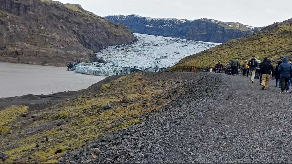 പിന്നീട് ഞങ്ങൾ പോയത് ഒരു നദി മുഴുവൻ ഐസ് വന്നു മൂടികിടക്കുന്നതു കാണുന്നതിനുവേണ്ടിയാണ് ഞങ്ങൾ ബസ് പാർക്ക് ചെയ്ത സ്ഥലംവരെ നേരത്തെ ഐസ് മൂടികിടന്നതാണെന്നും കാലാവസ്ഥ വ്യതിയാനത്തിന്റെ ഭാഗമായി ഇവിടെയുണ്ടായിരുന്ന ഐസ് മലകൾ ഉരുകി ഒഴുകി പോയതാണെന്നും ഗൈഡ് പറഞ്ഞു ,നദിയിൽ നിറഞ്ഞു നിൽക്കുന്ന ഐസ് മലയുടെ അടുത്തുപോയി കണ്ടു അവിടെ ധാരാളം വിവിധ രാജ്യങ്ങളിൽ ഉള്ള ആളുകൾ ഐസ് മല സഞ്ചാരികൾ (Glacier hike) എത്തിയിരുന്നു ഗൈഡുകളുടെ സഹായത്തോടെ നമുക്കും മഞ്ഞുമലകളിലൂടെ നടന്നുപോകാം പക്ഷെ അതിനു നേരത്തെ ബുക്ക് ചെയ്തു അനുവാദം വാങ്ങണം അതിനുള്ള ഉപകരണങ്ങളൂം അവിടെനിന്നു ലഭിക്കും കൂടുതലും യുവാക്കളാണ് ഈ ഉദ്യമത്തിന് മുതിരുന്നതായി കണ്ടത് .