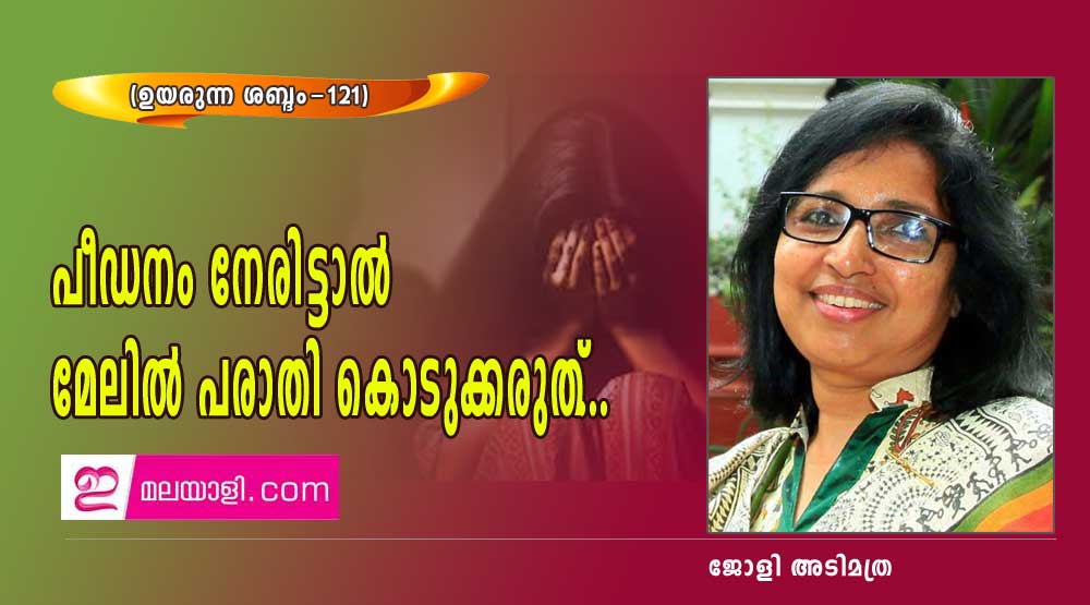ഒരു പെണ്ണിനെ വെറുപ്പാണെങ്കില് അവളെ ഇല്ലാതാക്കാന് അധികം കഷ്ടപ്പെടേണ്ട.ഒരു ഗുണ്ടയെ വിട്ട് അപമാനിച്ചാല് മതി.ചത്തു ജീവിക്കണ്ടേി വരും..പുരുഷനെ ഒതുക്കാന് തീരെ കഷ്ടപ്പെടേണ്ട.പീഡിപ്പിച്ചെന്ന് ഒരു സ്ത്രീയെക്കൊണ്ട് പറയിച്ചാല് മതി.എന്താ അല്ലേ ?.സോഷ്യല് മീഡിയയിലൂടെ ഫേക്ക് എഡി വഴി എന്തു തെമ്മാടിത്തരവും വിളിച്ചുപറഞ്ഞ് ആരെയും കൊന്നൊടുക്കാം.പൊലിസുകാരുടെ കൗശലവും വക്കിലിന്റെ കുബുദ്ധിയും ഇഴഞ്ഞുനീങ്ങുന്ന കോടതിനടപടികളും കൂടെയായപ്പോള് ഒരായുസ്സ് മുഴുവന് കാത്തിരുന്നാലും നീതി അകലെത്തന്നെ ആയിരിക്കുമെന്ന് ഉറപ്പാണ്.പരാക്രമം സ്ത്രീയോടല്ല വേണ്ടത് എന്ന് ഏതു മരമണ്ടനാണ് പണ്ടു പറഞ്ഞത്.