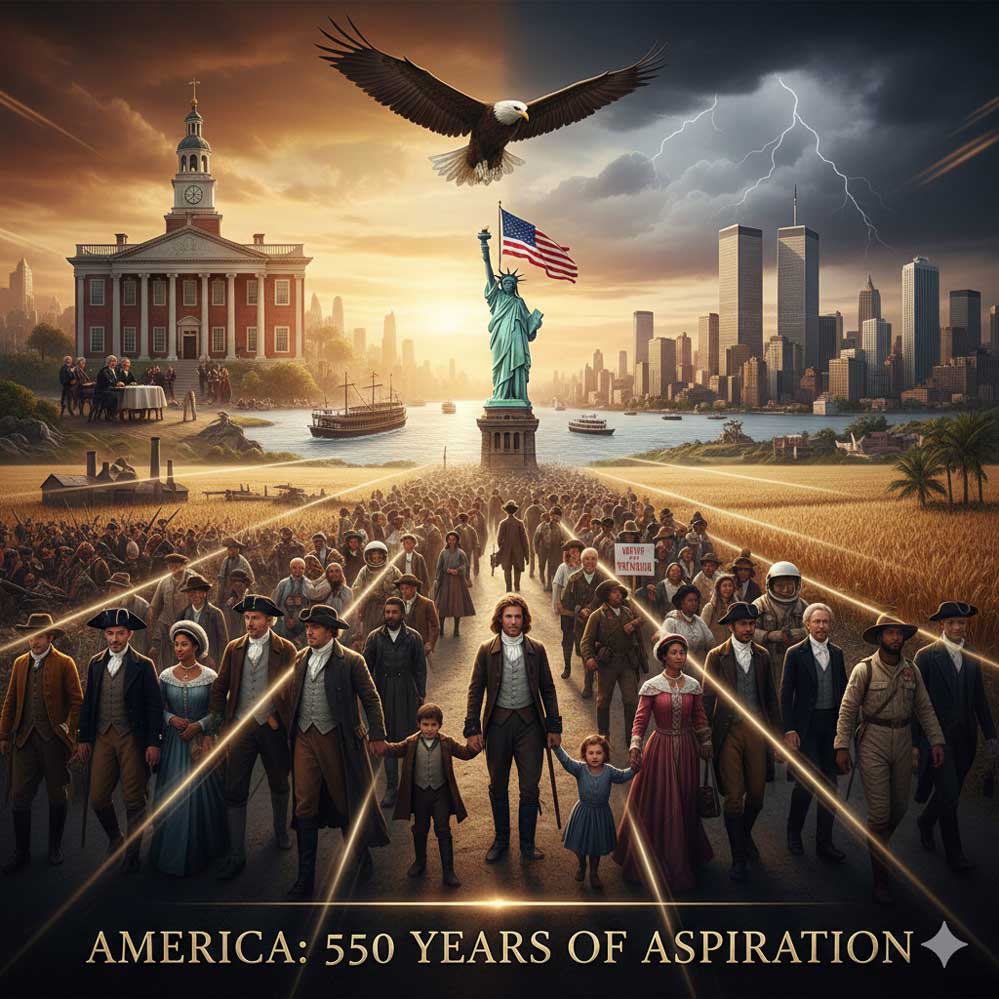 ഏറെ പ്രതീക്ഷകളും പ്രത്യാശകളും നിറഞ്ഞ ഒരു പുതുയുഗ പിറവിയെക്കൂടി ലോകജനത വലിയ ആരവങ്ങളോടെ വരവേൽക്കുകയാണ്. ലോകത്തിലെ ഏറ്റവും വലിയ രാഷ്ട്രീയ ശക്തിയും സാമ്പത്തിക സൈനിക ശേഷിയുമായ അമേരിക്കൻ ഐക്യനാടുകൾ ബ്രിട്ടീഷ് മേൽക്കോയ്മയിൽ നിന്നും സ്വതന്ത്രമായതിന്റെ കാൽ സഹസ്രാബ്ദം പൂർത്തിയാക്കുന്ന വർഷം കൂടിയാണ് 2026. ഇരുനൂറ്റിഅന്പത് വർഷങ്ങൾക്കു മുൻപ് വടക്കെ അമേരിക്കയിലെ 13 കോളനികൾക്കു ബ്രിട്ടീഷ് ഭരണകൂടം സ്വാതന്ത്ര്യം പ്രഖ്യാപിച്ചുകൊണ്ടു തോമസ് ജെഫേഴ്സൺന്റെ നേതൃത്വത്തിലുള്ള സംഘം എഴുതിയുണ്ടാക്കിയ ഉടമ്പടിയിൽ ( Declaration of Independence) 1776 ജൂലായ് നാലിനാണ് ഇരുരാജ്യങ്ങളിലെയും പ്രതിനിധികൾ ഒപ്പുവെച്ചത്. ചരിത്ര പ്രാധാന്യമുള്ള ആ പ്രഖ്യാപനത്തിലെ വ്യവസ്ഥകൾ അതിന് ശേഷം ലോകത്തെമ്പാടും ഉടലെടുത്ത നിരവധി ജനാധിപത്യ മനുഷ്യാവകാശ മുന്നേറ്റങ്ങളുടെ അടിസ്ഥാന പ്രമാണമായി മാറുന്നതാണ് ലോകം പിന്നീട് കണ്ടത്.
