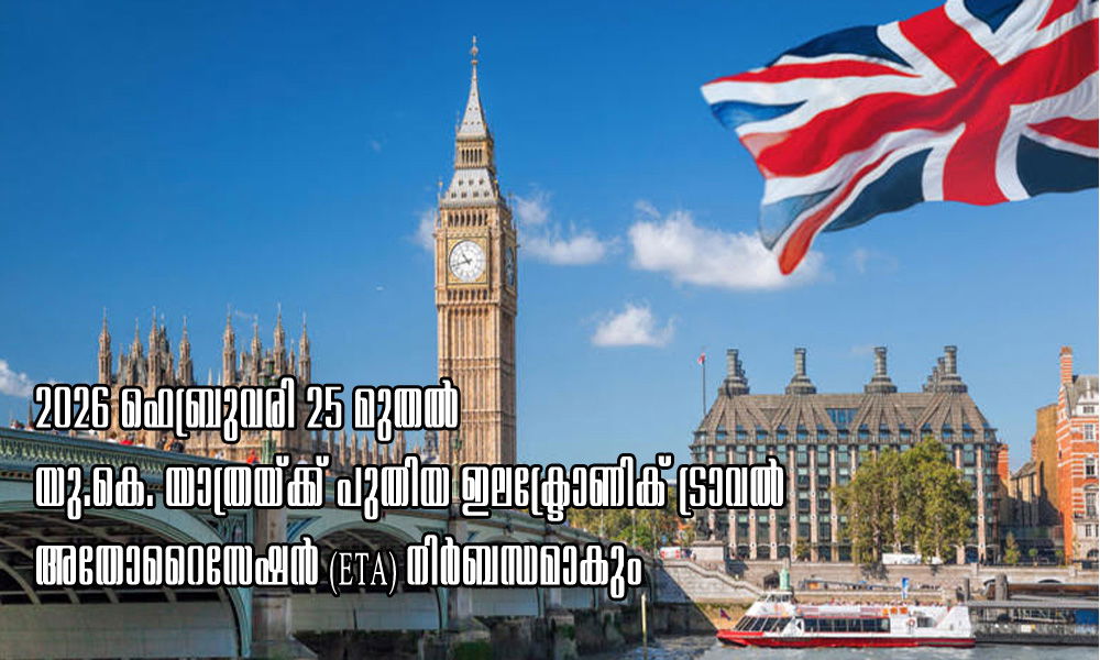 2026 ഫെബ്രുവരി 25 മുതൽ യുണൈറ്റഡ് കിംഗ്ഡത്തിലേക്ക് യാത്ര ചെയ്യുന്ന സന്ദർശകർക്ക്—അമേരിക്കൻ പൗരന്മാരടക്കമുള്ളവർക്ക്—ഇലക്ട്രോണിക് ട്രാവൽ അതോറൈസേഷൻ (ETA) നിർബന്ധമായിരിക്കും.