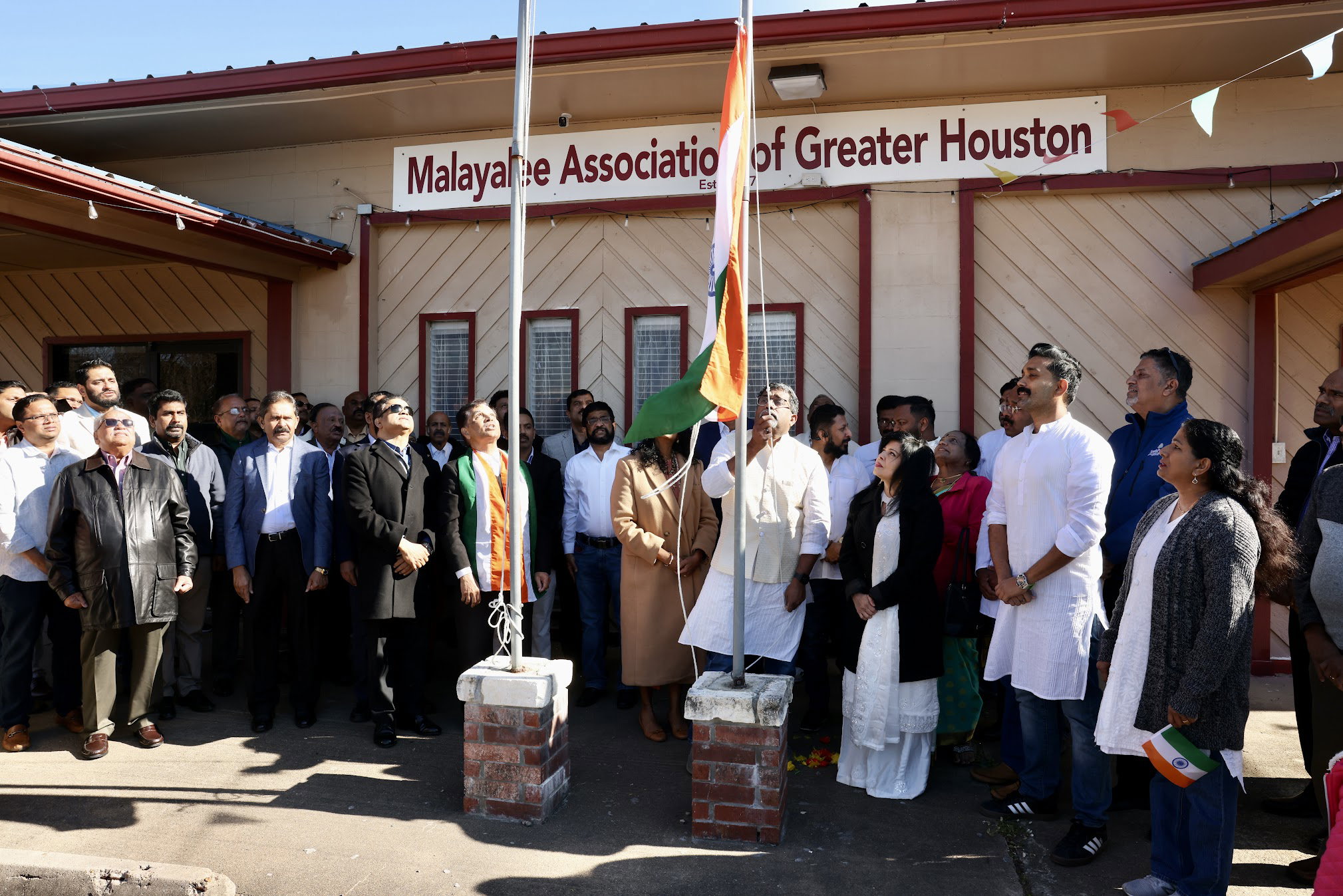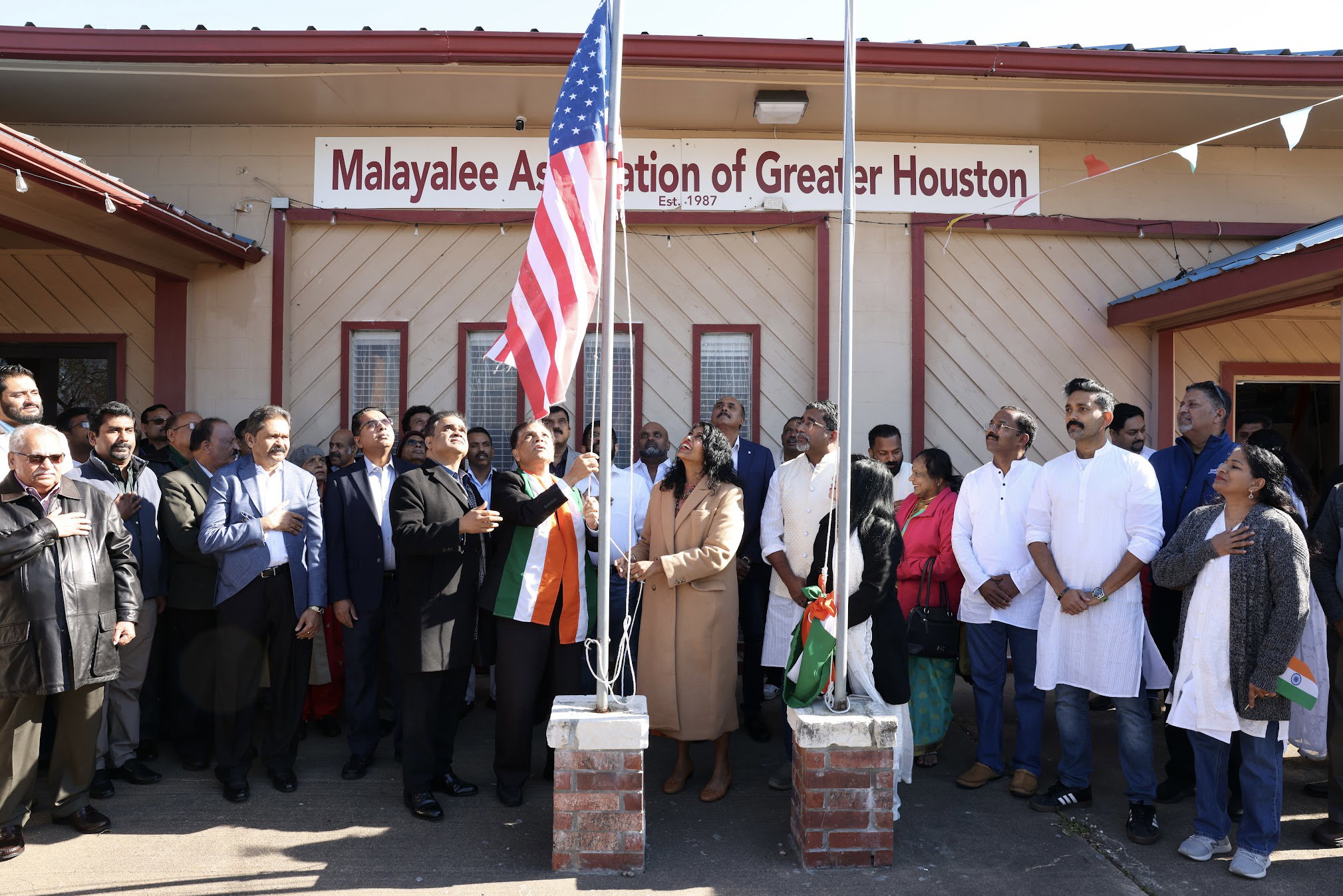 അതിശീത കാലാവസ്ഥയിലുള്ള ശനിയാഴ്ച്ച രാവിലെ കേരള ഹൗസില് എത്തി ചേര്ന്ന നൂറ് കണക്കിന് മാഗ് അംഗങ്ങളുടെ സാന്നിദ്ധ്യത്തില് ഫോര്ട്ട് ബെന്ഡ് കൗണ്ടി ജഡ്ജ് കെ.പി ജോര്ജ്, സ്റ്റാഫോര്ഡ് സിറ്റി മേയര് കെന് മാത്യു, ജഡ്ജ് ജൂലി മാത്യു,അസ്സോസിയേറ്റ് ജഡ്ജ് ജെറ്റി ഏബ്രഹാം എന്നിവര് ചേര്ന്ന് അമേരിക്കന് പതാക ഉയര്ത്തി.