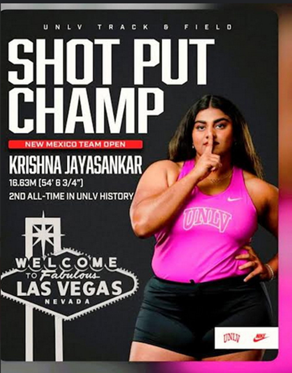 കഴിഞ്ഞ വര്ഷം മാര്ച്ചില് ഷോട്ട്പുട്ടില് 16.03 മീറ്റര് താണ്ടിയപ്പോള് 16 മീറ്റര് പിന്നിട്ട ആദ്യ ഇന്ത്യക്കാരി എന്ന നേട്ടം കൃഷ്ണ ജയശങ്കര് മേനോനു സ്വന്തമായി. അത് ഇന്ത്യയില് ദേശീയ ഇന്ഡോര് റെക്കോര്ഡുമായി. ഇപ്പോള്, ജനുവരി 31 ന് കൃഷ്ണ വീണ്ടും മികവുകാട്ടി. ഇക്കുറി ഷോട്ട് എത്തിയത് 16.63 മീറ്ററില്. യു.എസിലെ അല്ബൂക്കെര്ക്കില് നടന്ന ന്യൂ മെക്സിക്കോ ടീം ഓപ്പണ് 2026 ലാണ് കൃഷ്ണ എന്ന ഇരുപത്തിമൂന്നുകാരി പുതിയ ദൂരം താണ്ടിയത്. ഇവിടെ സ്വര്ണ്ണ മെഡല് തന്നെ ലഭിച്ചു.