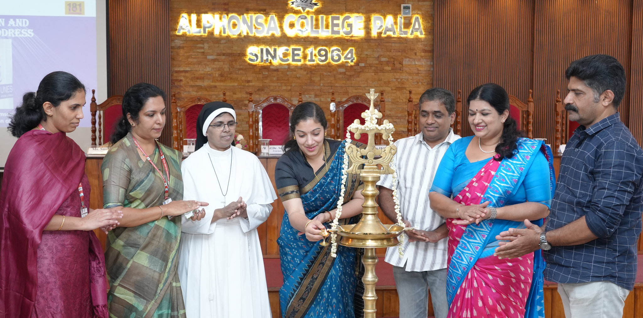 പാലാ അൽഫോൻസാ കോളജ് വുമൺസ് സെൽ, മഹാത്മാഗാന്ധി നാഷണൽ ഫൗണ്ടേഷൻ എന്നിവയുടെ ആഭിമുഖ്യത്തിൽ പാലാ അൽഫോൻസ കോളജിൽ സംഘടിപ്പിച്ച മീറ്റ് ദ ഡിപ്ലോമാറ്റ് പരിപാടി ശ്രീലങ്കയിലെ ഇന്ത്യൻ ഹൈക്കമ്മീഷണിലെ ഫസ്റ്റ് സെക്രട്ടറി റോഷ്നി തോംസൺ ഉദ്ഘാടനം ചെയ്യുന്നു. പൊന്നു കെ അൽഫോൻസ്, വുമൺസ് സെൽ കോഓർഡിനേറ്റർ സ്മിത ക്ലാരി ജോസഫ്, അൽഫോൻസ കോളജ് പ്രിൻസിപ്പൽ ഡോ സിസ്റ്റർ മിനിമോൾ മാത്യു, മഹാത്മാഗാന്ധി നാഷണൽ ഫൗണ്ടേഷൻ ചെയർമാൻ എബി ജെ ജോസ്, വൈസ് ചെയർമാൻ ഡോ സിന്ധുമോൾ ജേക്കബ്, സെക്രട്ടറി അനൂപ് ചെറിയാൻ എന്നിവർ സമീപം