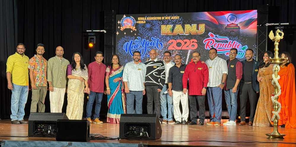 ന്യൂജഴ്സിയിലെ കടുത്ത ശൈത്യാവസ്ഥയെയും അവഗണിച്ച് വലിയ ജനപങ്കാളിത്തത്തോടെ കേരള അസോസിയേഷൻ ഓഫ് ന്യൂജഴ്സി (KANJ) സംഘടിപ്പിച്ച 2026-ലെ ന്യൂ ഇയർ–റിപ്പബ്ലിക് ഡേ സംയുക്ത ആഘോഷം ശ്രദ്ധേയമായി. സംഘടനയുടെ 2026-ലെ ആദ്യ ഔദ്യോഗിക പരിപാടിയെന്ന നിലയിൽ നടന്ന ചടങ്ങ് വിപുലമായ ആഘോഷങ്ങളോടെയാണ് അരങ്ങേറിയത്.
