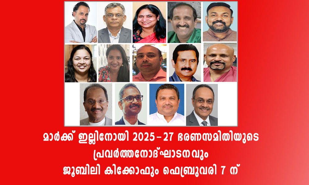 ചിക്കാഗോ : മലയാളി അസോസിയേഷൻ ഓഫ് റെസ്പിറേറ്ററി കെയർ 2025-27 വർഷത്തേക്ക് തെരഞ്ഞെടുക്കപ്പെട്ട ഭരണസമിതിയുടെ പ്രവർത്തനോദ്ഘാടനവും ജൂബിലി കിക്കോഫും ഫാമിലി നൈറ്റും 2026 ഫെബ്രുവരി 7 ശനിയാഴ്ച വൈകിട്ട് 6 ന് മോർട്ടൻ ഗ്രോവിലുള്ള സെന്റ് മേരീസ് ക്നാനായ ചർച്ച് ഓഡിറ്റോറിയത്തിൽ വെച്ച് നടക്കും