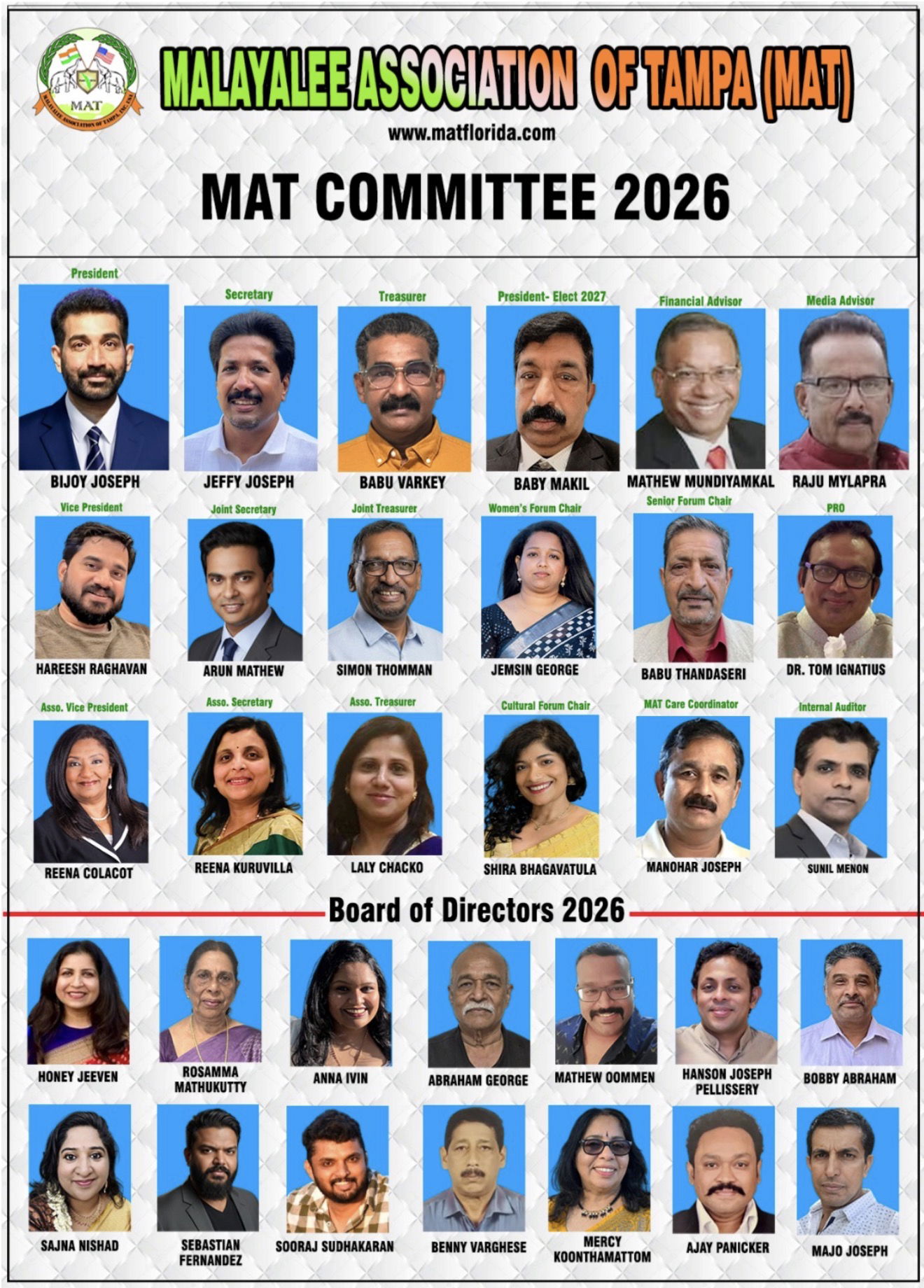 മലയാളി അസോസിയേഷന്റെ(MAT) ഈ ആഘോഷങ്ങളില് പങ്കെടുക്കുവാന് ഏവരേയും ഹൃദയപൂര്വ്വം ക്ഷണിക്കുന്നതായി ഭാരവാഹികള് അറിയിച്ചു.