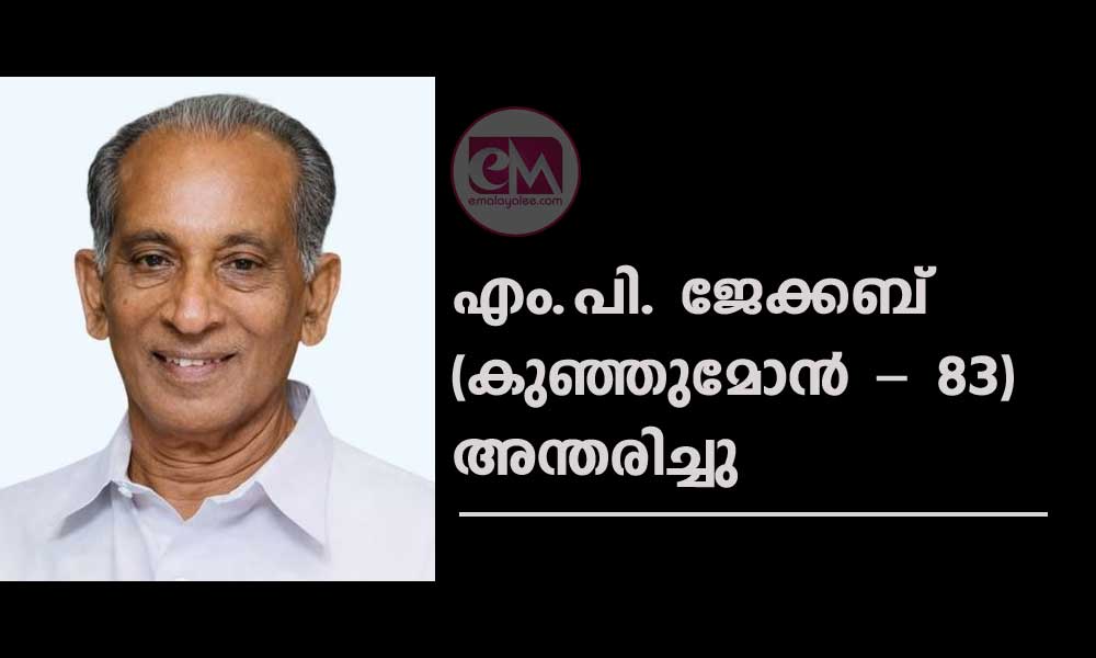 റാന്നി മന്ദമരുതി മണിമലേത്ത് എം.പി. ജേക്കബ് (കുഞ്ഞുമോൻ - 83) അന്തരിച്ചു. സംസ്കാരം ៣០ (13-02-2026) ໑໓໑໖ 3 മണിക്ക് ഭവനത്തിലെ ശുശ്രൂഷകൾ -ക്കു ശേഷം 4 മണിക്ക് റാന്നി മന്ദമ രുതി സെൻ്റ് തോമസ് ക്നാനായ -കുരിശുപള്ളിയിൽ നടത്തപ്പെടും. ഭാര്യ റിട്ട. പ്രഫ. സി.ജെ. കുഞ്ഞു ചിറയിൽ ചിങ്ങവനം. മക്കൾ: സന്തോഷ് പി. ജേക്കബ്, "ഡാ. സ്നേഹ എൽസി ജേക്കബ് Principal in-charge, St. Thomas College സ്വപ്ന ജോസഫ് കിടങ്ങേറ്റിപ്പറ Ranni). . ഏബ്രഹാം കണ്ണൻകുഴയത്ത്, னர் கைல வி ജികയിൽ, അമ്മുക്കുട്ടി കാവുങ്കൽ, പരേതനായ മാത്തുക്കുട്ടി മണിമലേ ത്ത്, ശാന്തമ്മ വാഴയിൽ, മോളിക്കുട്ടി