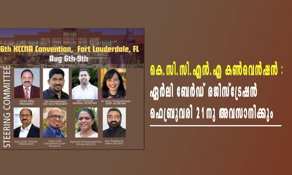 ഫ്ലോറിഡ: 16-ാമത് കെ.സി.സി.എൻ.എ കൺവെൻഷൻ, ഫ്ലോറിഡയിലെ ഫോർട്ട് ലോഡർഡെയിലിൽ ചരിത്ര സംഗമത്തിന് ഒരുക്കങ്ങൾ അതിവേഗം മുന്നേറുന്നതായും കൺവെൻഷൻറെ ഏർലി ബേർഡ് രജിസ്ട്രേഷൻ ഫെബ്രുവരി 21-നു അവസാനിമെന്നും കൺവെൻഷൻ സ്റ്റിയറിംഗ് കമ്മിറ്റീ അറിയിച്ചു. ഫ്ലോറിഡയിലെ ഫോർട്ട് ലോഡർഡെയിലെ ബ്രോവാർഡ് കൗണ്ടി കൺവെൻഷൻ സെൻറ്ററിൽ , 2026 ആഗസ്റ്റ് 6 മുതൽ 9 വരെ നടക്കുന്ന 16-ാമത് കെ.സി.സി.എൻ.എ നാഷണൽ കൺവെൻഷൻ വടക്കേ അമേരിക്കയിലെ ക്നാനായ കത്തോലിക്ക സമൂഹത്തിന്റെ മഹത്തായ സംഗമമാണ്. KCASF (മയാമി), KCCCF (ടാമ്പാ ) എന്നീ യൂണിറ്റുകളുടെ സംയുക്ത ആതിഥേയത്വത്തിലാണ് ഈ മഹാ സംഗമം സംഘടിപ്പിക്കുന്നത്.