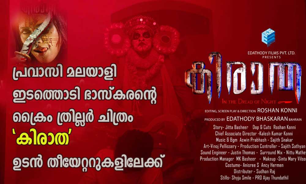 ഇടത്തൊടി ഫിലിംസിൻ്റെ ബാനറിൽ ബഹ്റൈനിലും നാട്ടിലും റിലീസായ ഈ നാല് ഹ്രസ്വചിത്രങ്ങൾക്കു മുമ്പ് തന്നെ നാട്ടിൽ നിർമ്മാണം ആരംഭിച്ച ഒരു മുഴുനീള ചലചിത്രം ഇടത്തൊടി ഭാസ്ക്കരൻ നിർമ്മിച്ച് ഉടൻ തീയേറ്ററുകളിൽ എത്തുന്ന ആക്ഷൻ ക്രൈം ത്രില്ലർ സിനിമയാണ് "കിരാത". നവാഗതനായ റോഷൻ കോന്നി സംവിധാനം ചെയ്ത ചിത്രം, നിരവധി പുതുമുഖങ്ങളോടൊപ്പം എം ആർ ഗോപകുമാർ, ചെമ്പിൽ അശോകൻ, ദിനേശ് പണിക്കർ, സംവിധായകൻ തുളസീദാസ്, ഡോ രജിത്കുമാർ, അരിസ്റ്റോ സുരേഷ്, രാജ്മോഹൻ, നീനാ കുറുപ്പ് വൈഗ റോസ് തുടങ്ങി നിരവധി പേർ അഭിനയിക്കുന്നു. ചിത്രത്തിൽ ഇടത്തൊടി ഭാസ്ക്കരനും ഒരതിഥി വേഷത്തിലെത്തുന്നു.