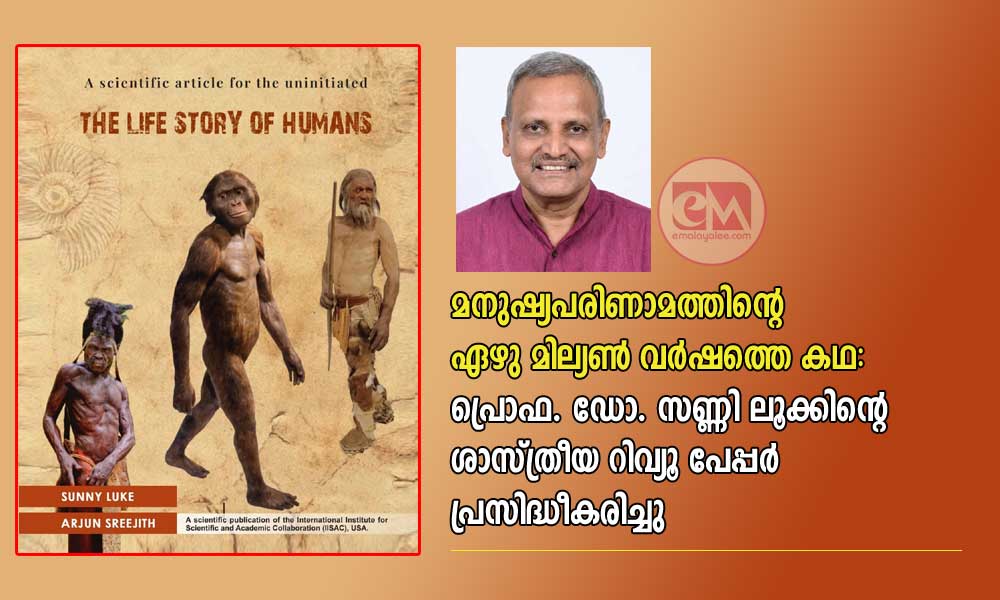 അമേരിക്കയിൽ ഗവേഷണം നടത്തിയ മലയാളി ശാസ്ത്രജ്ഞൻ പ്രൊഫ. ഡോ. സണ്ണി ലൂക്കിന്റെ ശാസ്ത്രീയ റിവ്യൂ പേപ്പർ പ്രസിദ്ധീകരിച്ചു. ഇന്റർനാഷണൽ ഇൻസ്റ്റിറ്റ്യൂട്ട് ഫോർ സയന്റിഫിക് ആൻഡ് അക്കാഡമിക് കൊളാബോറേഷനുമായി(ഐഐഎസ്എസി,യുഎസ്എ) സഹകരിച്ച് പുറത്തിറങ്ങിയ ഈ പേപ്പർ 'ശാസ്ത്രം മുന്നോട്ട്' എന്ന അക്കാദമിക് ജേർണലിലാണ് പ്രസിദ്ധീകരിച്ചത്. മനുഷ്യന്റെ ഉത്ഭവവും ജനിതകപരിണാമവും ലളിതമായി വിശദീകരിക്കുന്നതുകൊണ്ടുതന്നെ ഈ വിഷയത്തിൽ താല്പര്യമുള്ള ആർക്കും കൗതുകത്തോടെ വായിച്ച് രസിക്കാനാകുമെന്നാണ് രചയിതാവ് നൽകുന്ന ഉറപ്പ്. മനുഷ്യ പരിണാമത്തെക്കുറിച്ച് മുൻകൂട്ടി ആഴത്തിലുള്ള അറിവില്ലാത്തവർക്കായി തയ്യാറാക്കിയ ഫസ്റ്റ് ലെവൽ അവെർനെസ് പേപ്പർ ആണിതെന്ന് സാരം. ബയോളജി, സോഷിയോളജി, ആന്ത്രോപോളജി, ഹ്യൂമൻ ഇക്കോളജി, ലിബറൽ ആർട്സ് തുടങ്ങിയ വിഷയങ്ങൾ പഠിക്കുന്ന കോളജ് വിദ്യാർത്ഥികൾക്ക് ഈ അവലോകനം ഒരു മുതൽക്കൂട്ടായിരിക്കും.