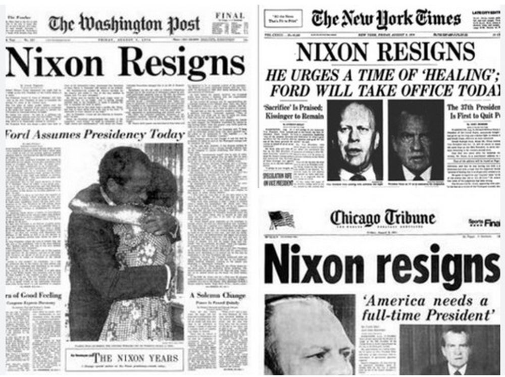 നിക്സൻറെ രാജി വാഷിംഗ്ടൺ പോസ്റ്റിലും ന്യുയോർക്ക് ടൈംസിലും