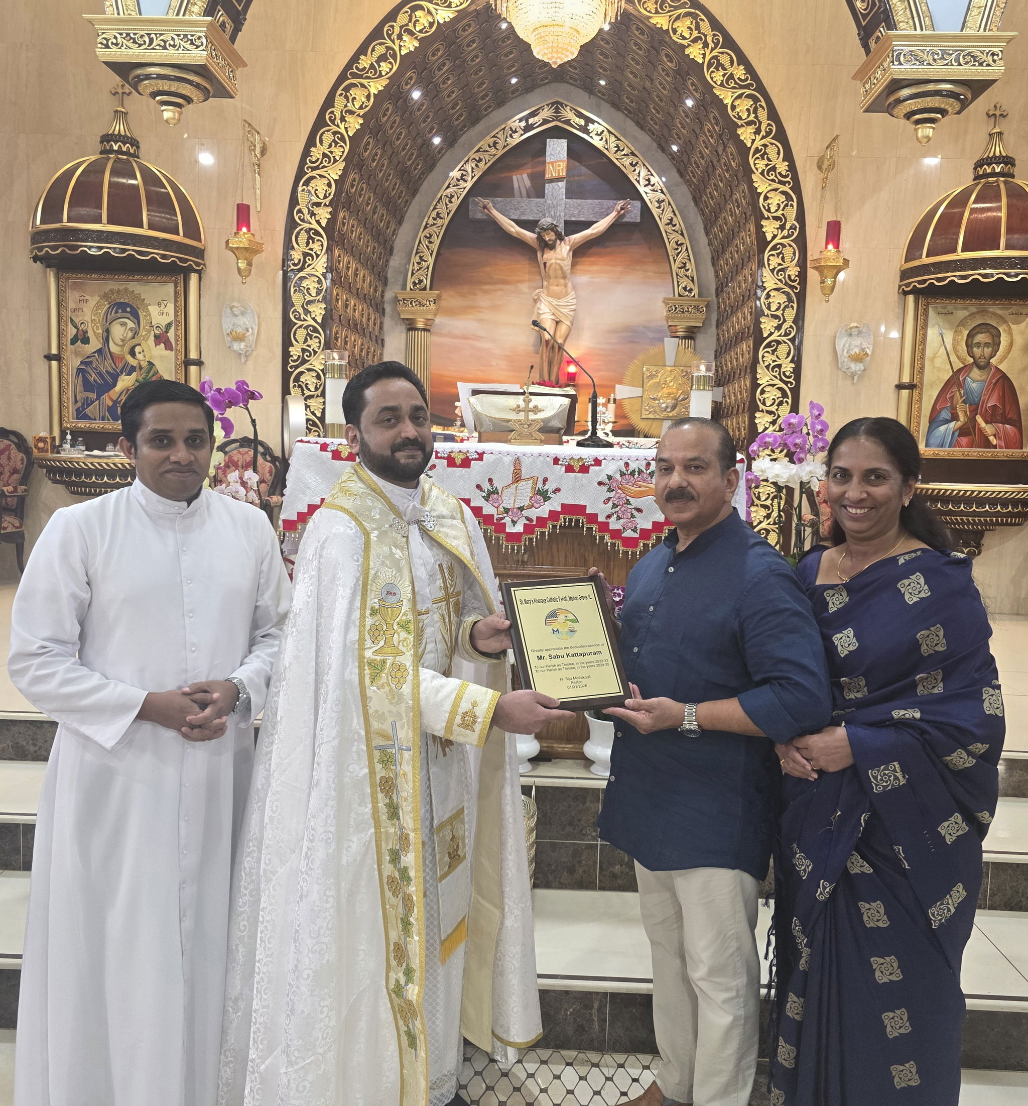 ചിക്കാഗോ: മോര്ട്ടണ് ഗ്രോവ് സെന്റ് മേരീസ് ക്നാനായ കത്തോലിക്കാ ദേവാലയത്തില് സ്ഥാനമൊഴിഞ്ഞ എക്സിക്യൂട്ടീവിനെ ആദരിച്ചു. കഴിഞ്ഞ നാല് വര്ഷമായി ട്രസ്റ്റീ കോഓര്ഡിനേറ്റര് ആയി പ്രവര്ത്തിച്ചിരുന്ന സാബു കട്ടപ്പുറം, കഴിഞ്ഞ രണ്ടു വര്ഷമായി കൈക്കാരന്മാരായി സേവനം അനുഷ്ടിച്ചിരുന്ന ബിനു പൂത്തുറയില്, ജോര്ജ് മറ്റത്തിപ്പറമ്പില്, ലൂക്കോസ് പൂഴിക്കുന്നേല്, നിബിന് വെട്ടിക്കാട്ട് എന്നിവരെയും, പബ്ലിക് റിലേഷന് ഓഫീസര് ആയി പ്രവര്ത്തിച്ചിരുന്ന അനില് മറ്റത്തിക്കുന്നേലിനെയും ആണ് ആദരിച്ചത്.
