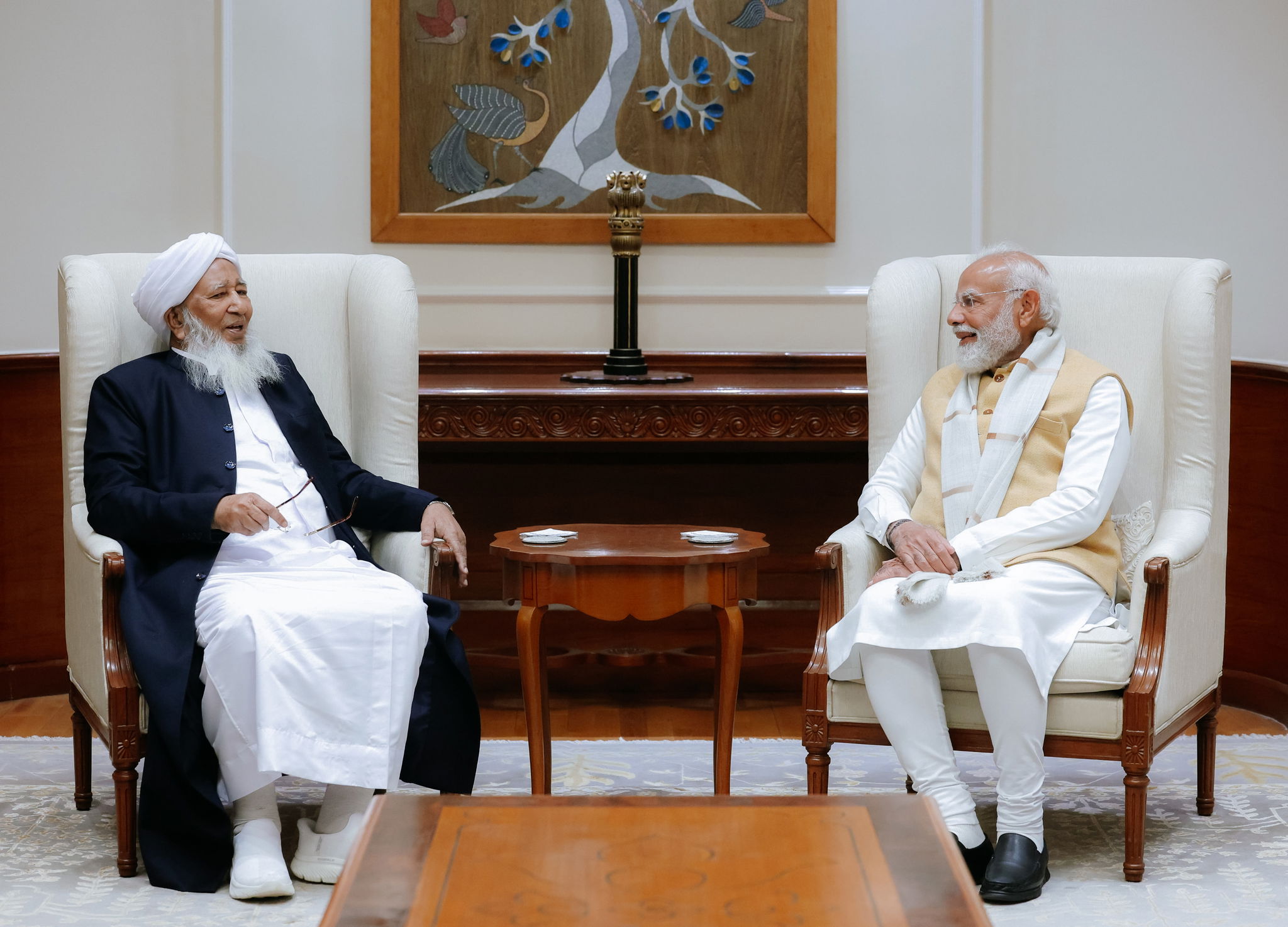 പ്രധാനമന്ത്രി നരേന്ദ്ര മോദിയും ഇന്ത്യൻ ഗ്രാൻഡ് മുഫ്തി കാന്തപുരം എപി അബൂബക്കർ മുസ്ലിയാരും നടത്തിയ കൂടിക്കാഴ്ചയിൽ നിന്ന് .