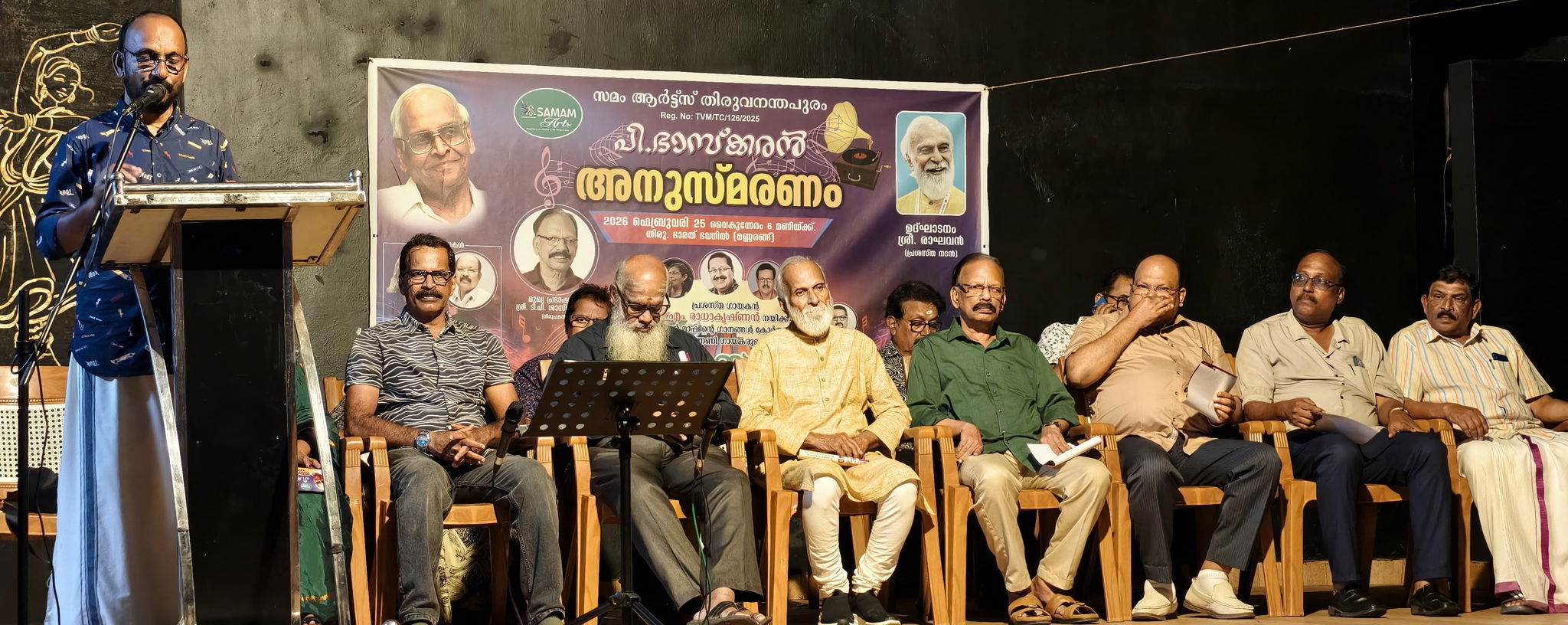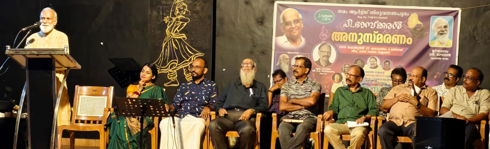 സമം ആര്ട്സ് സെക്രട്ടറിയും ചലച്ചിത്ര ടെലിവിഷന് തിയറ്റര് സംവിധായകനുമായ സി വി പ്രേംകുമാര് സ്വാഗതമാശംസിച്ച ചടങ്ങിന്റെ അധ്യക്ഷത വഹിച്ചത് പ്രസിഡന്റ് അജയ് തുണ്ടത്തിലാണ്. ഓള്ഡ് ഇസ് ഗോള്ഡ് ഗായകന് എം രാധാകൃഷ്ണന്റെ നേതൃത്വത്തില് എസ് നാരായണന്, രാധികാ നായര്, സിന്ധു പ്രതാപ്, മണി വി നായര്, അജയ് വെള്ളരിപ്പണ, സജീവ് എസ്, മഞ്ജിത്ത്, ഡോ (മേജര്) കെ ആര് അജീന്ദ്രനാഥ്, ഡോ ഹരീഷ് തുടങ്ങിയ ഗായകര് ചേര്ന്ന് പി ഭാസ്ക്കരന്റെ ഗാനങ്ങള് കോര്ത്ത് ഗാനസന്ധ്യയുണ്ടായിരുന്നു. ഗാനസന്ധ്യ ആങ്കര് ചെയ്തത് മധുസൂദനന് നായരായിരുന്നു. നന്ദി പ്രകാശിപ്പിച്ചത് പ്രശസ്ത നര്ത്തകി സിത്താര ബാലകൃഷ്ണനാണ്.