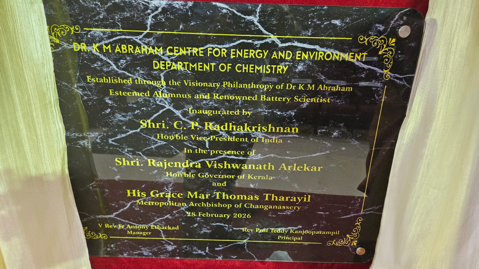 തന്റെ മാതൃകലാലയമായ ചങ്ങനാശ്ശേരി സെന്റ് ബെർക്ക്മാൻസ് കോളേജിൽ ഗവേഷണ കേന്ദ്രം ആരംഭിക്കുവാൻ മുൻ വിദ്യാർത്ഥിയും അന്താരാഷ്ട്ര പ്രശസ്തിയാർജിച്ച ലിഥിയം ബാറ്ററി ശാസ്ത്രജ്ഞനുമായ ഡോ. കെ. എം. അബ്രഹാമിന്റെ ധനസഹായം. ഏകദേശം 1.5 കോടി രൂപ ചെലവ് കണക്കാക്കുന്ന ഈ പദ്ധതി, ചങ്ങനാശ്ശേരി സെന്റ് ബെർക്ക്മാൻസ് കോളേജിലെ രസതന്ത്ര വിഭാഗത്തിന്റെ കീഴിൽ ഊർജവും പരിസ്ഥിതിയും സംബന്ധിച്ച ഗവേഷണ കേന്ദ്രം സ്ഥാപിക്കുന്നതിനായാണ് സമർപ്പിച്ചിരിക്കുന്നത്. “ഡോ. കെ. എം. അബ്രഹാം സെന്റർ ഫോർ എനർജി ആൻഡ് എൻവയോൺമെന്റ്” എന്ന പേരിൽ അറിയപ്പെടുന്ന ഈ അത്യാധുനിക ഗവേഷണ കേന്ദ്രം എസ് ബി കോളേജിന്റെ ശതാബ്ദി ആഘോഷത്തോട് അനുബന്ധിച്ചു ഫെബ്രുവരി 28നു ഉപരാഷ്ട്രപതി സി പി രാധാകൃഷ്ണൻ ഉത്ഘാടനം ചെയ്തു.