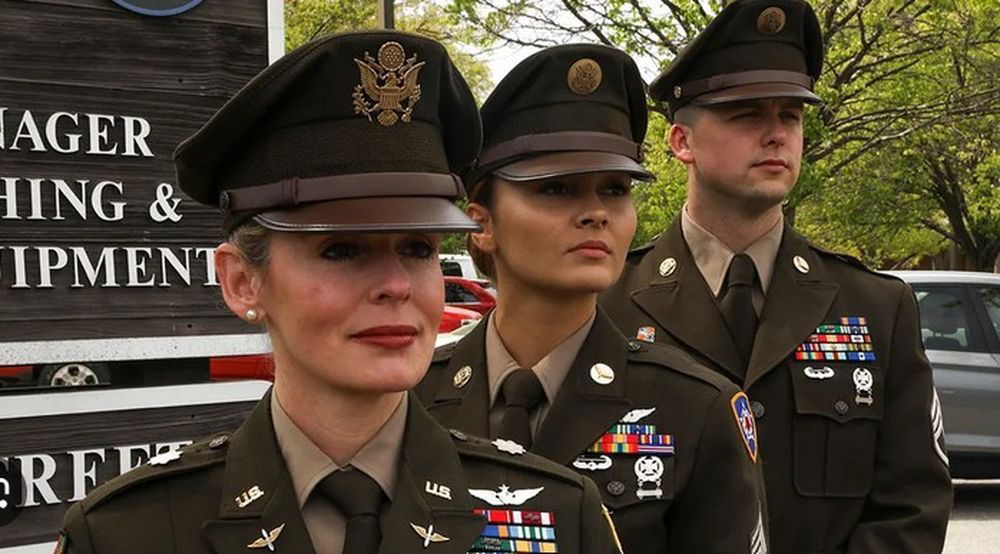 ചിഹ്നങ്ങളോടെ യുണിഫോം ധരിച്ച യുഎസ് സൈനികർ