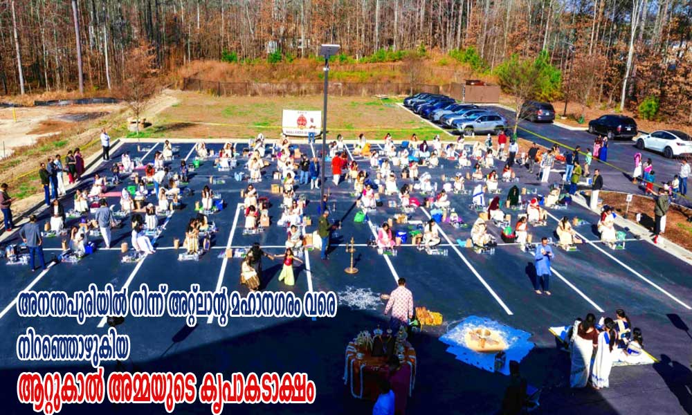 അനന്തപുരിയിലെ ആറ്റുകാൽ അമ്മയുടെ ദിവ്യാനുഗ്രഹം തേടി അറ്റ്ലാന്റയിലെ ഭക്തജനങ്ങൾ ഒരുമിച്ച് സമർപ്പണത്തോടെ പങ്കെടുത്തു.