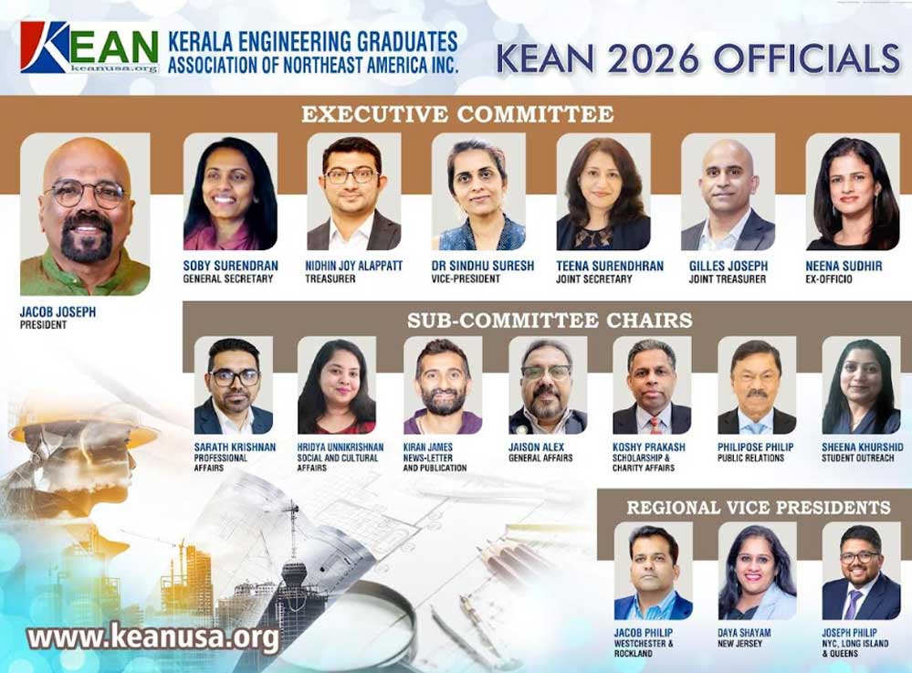 കേരള എൻജിനീയേഴ്സ് അസോസിയേഷൻ ഓഫ് നോർത്ത് ഈസ്റ്റ് അമേരിക്ക (KEAN) അതിൻ്റെ 2026-ലെ പ്രവർത്തനങ്ങൾക്ക് ഫെബ്രുവരി 28-ന് ഔദ്യോഗികമായി തുടക്കം കുറിച്ചു. കഴിഞ്ഞ വർഷത്തെ നാഴികക്കല്ലുകൾ ആഘോഷിക്കാനും ഭാവിയിലേക്കുള്ള ഒരു അഭിലാഷ റോഡ്മാപ്പ് പ്രിവ്യൂ ചെയ്യാനും ഈ അവസരം അംഗങ്ങൾ ഉപയോഗിച്ചു