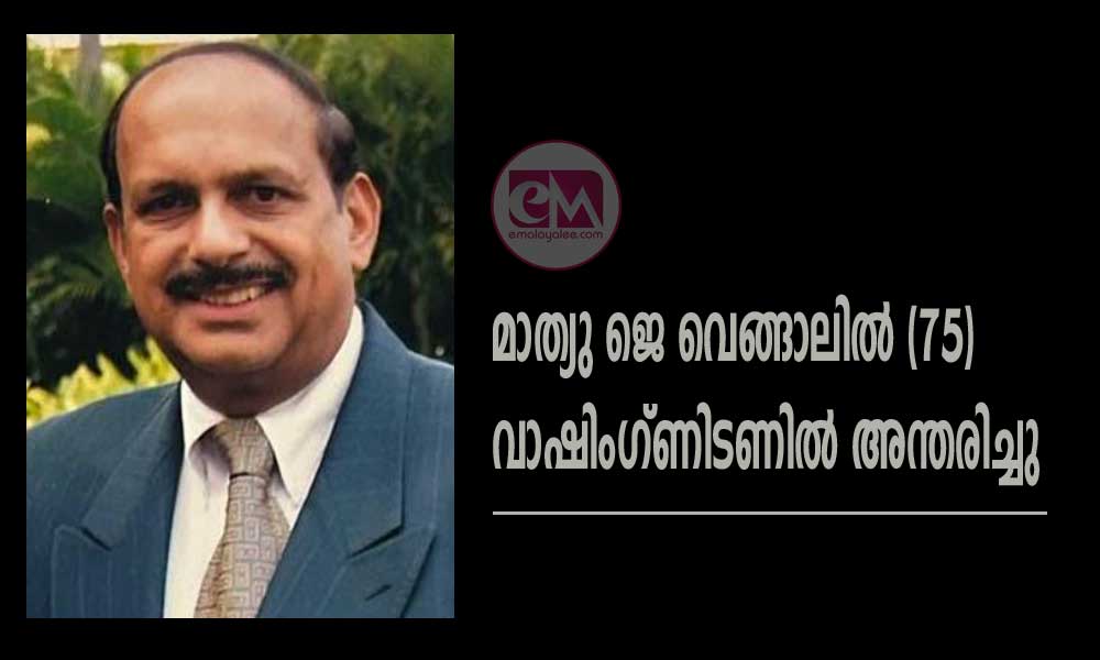 സിയാറ്റിൽ, വാഷിംഗ്ടൺ: കോട്ടയം കുമാരനല്ലൂർ സ്വദേശി മാത്യു ജെ വെങ്ങാലിൽ (75) വാഷിംഗ്ണിടണിൽ അന്തരിച്ചു.