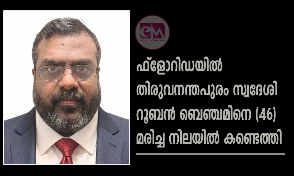തിരുവനന്തപുരം സ്വദേശിയായ റൂബൻ ബെഞ്ചമിൻ (46) അമേരിക്കയിലെ ഫ്ലോറിഡ സംസ്ഥാനത്തെ ഡെൽറേയ് ബീച്ചിലുള്ള വസതിയിൽ മരിച്ച നിലയിൽ കണ്ടെത്തപ്പെട്ടു. കഴിഞ്ഞ രണ്ട് ദിവസമായി അദ്ദേഹത്തെ കാണാതിരുന്നതിനെ തുടർന്ന് പൊലീസ് വീട്ടിലെത്തി ക്ഷേമപരിശോധന (Welfare Check) നടത്തുന്നതിനിടെയാണ് ഈ ദുഃഖകരമായ സംഭവം പുറത്ത് വന്നത്.