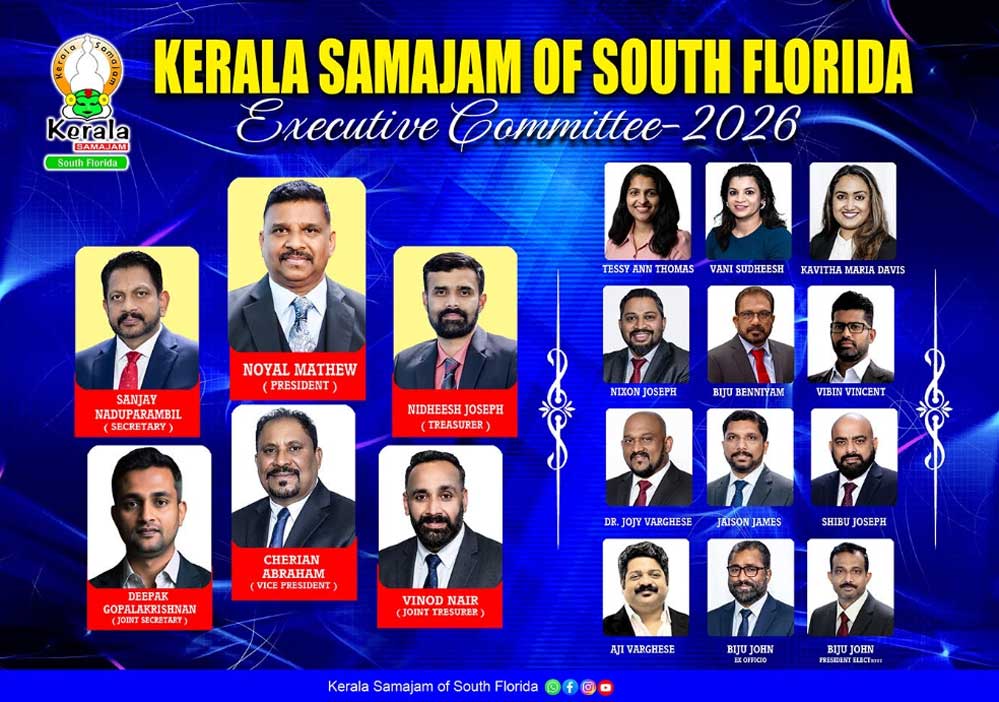 കേരളസമാജം ഓഫ് സൗത്ത് ഫ്ലോറിഡയുടെ 2026 -ലെ ഭരണസമിതി