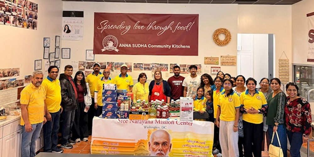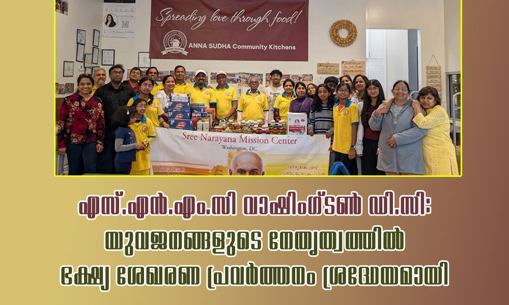 വാഷിംഗ്ടൺ ഡി.സിയിലെ ശ്രീനാരായണ മിഷൻ സെന്റർ (SNMC)യുടെ ആഭിമുഖ്യത്തിൽ യുവജന വിഭാഗത്തിന്റെ നേതൃത്വത്തിൽ സംഘടിപ്പിച്ച ഭക്ഷ്യ ശേഖരണ പ്രവർത്തനം കഴിഞ്ഞ വാരാന്ത്യത്തിൽ വിജയകരമായി പൂർത്തിയായി. കഴിഞ്ഞ നാല് ആഴ്ചകളായി സംഘടനയിലെ കുടുംബങ്ങൾ സഹകരിച്ച് ശേഖരിച്ച ഭക്ഷ്യവസ്തുക്കൾ, വോളണ്ടിയർമാരുടെ സംഘം വെർജീനിയയിലെ ഡല്ലസ് ടൗൺ സെന്റ്ററിലെ “അന്നസുധ” (Anna Sudha) കമ്മ്യൂണിറ്റി കിച്ചനിൽ എത്തിച്ചു.