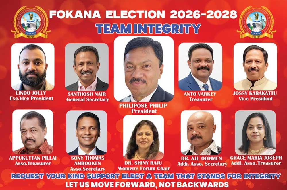 ന്യു യോർക്ക്: കേരളത്തിൽ നഴ്സുമാരുടെ ന്യായമായ അവകാശങ്ങൾ അനുവദിക്കുകയും അർഹമായ വേതനം നൽകുകയും ചെയ്യണമെന്ന് ഫൊക്കാന ഇലക്ഷനിലെ ടീം ഇന്റെഗ്രിറ്റി പാനലിന്റെ പ്രസിഡന്റ് സ്ഥാനാർഥി ഫിലിപ്പോസ് ഫിലിപ്പ് ആവശ്യപ്പെട്ടു.