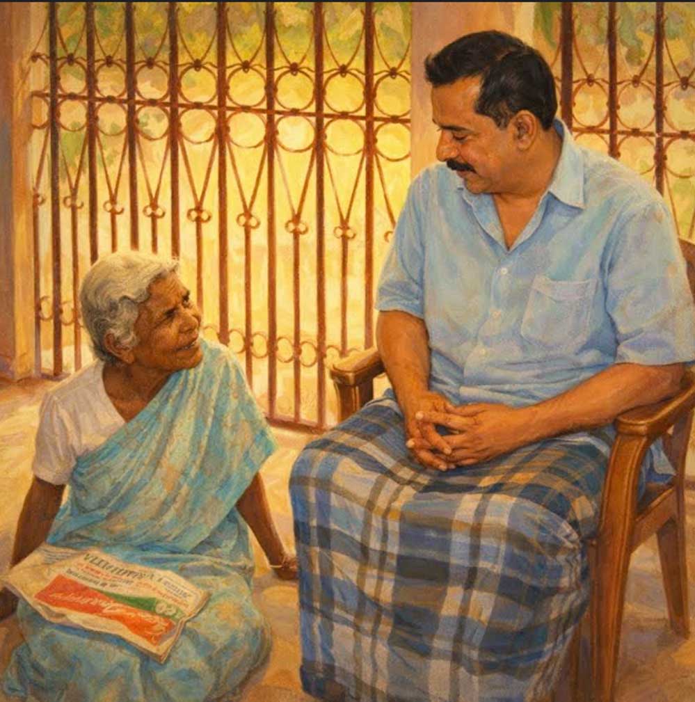 'ഒന്നുമില്ല കുഞ്ഞേ! വന്നിട്ടുണ്ടെന്ന് മൂലേക്കോണിലെ ജോയിച്ചായന് പറഞ്ഞു. എന്നാല് ഒന്നു കണ്ടേച്ചു പോകാമെന്ന് കരുതി'.