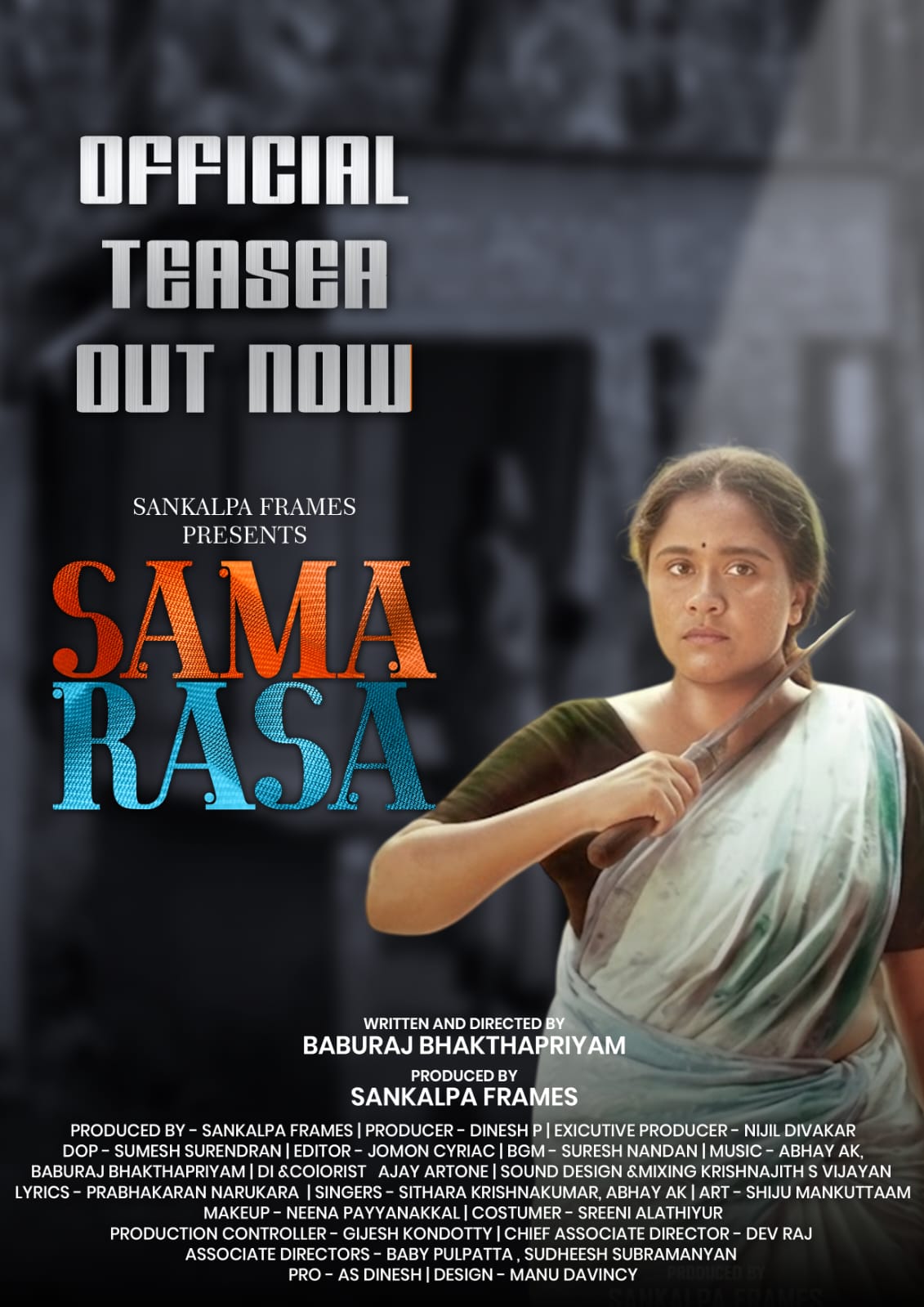 സങ്കല്പ ഫ്രെയിംസിന്റെ ബാനറില് ബാബുരാജ് ഭക്തപ്രിയം രചനയും സംവിധാനവും നിര്വഹിക്കുന്ന 'സമരസ' എന്ന ചിത്രത്തിന്റെ ഒഫീഷ്യല് ടീസര് പ്രശസ്ത ചലച്ചിത്ര താരങ്ങളുടെ സോഷ്യല് മീഡിയ പേജുകളിലൂടെ റിലീസ് ചെയ്തു.