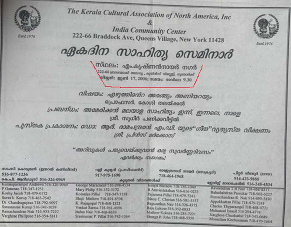 പത്രപ്രവര്ത്തന രംഗത്തും, സാഹിത്യരംഗത്തും പ്രശസ്തി നേടിയ വിശിഷ്ട വ്യക്തികള് അന്നു അമേരിക്കന് മലയാളി സമൂഹത്തിലുണ്ടായിരുന്നു. അവരില് പ്രമുരായ ഡോക്ടര് തോമസ് മുളക്കല്, ഡോക്ടര് എ.കെ.ബി.പിള്ള, ശ്രീ ജോയന് കുമരകം തുടങ്ങിയ മഹാന്മാര് അമേരിക്കന് മലയാള സാഹിത്യത്തിന്റെ വളര്ച്ചക്കു വേണ്ടി സേവനമനുഷ്ഠിച്ചവരാണു.അക്കാലത്തു തന്നെ മലയാള കവിതക്കു പുതു ലാവണ്യം പകര്ന്ന കവി ശ്രീ ചെറിയാന് കെ.ചെറിയാനും ഇവിടെയുണ്ടായിരുന്നു.