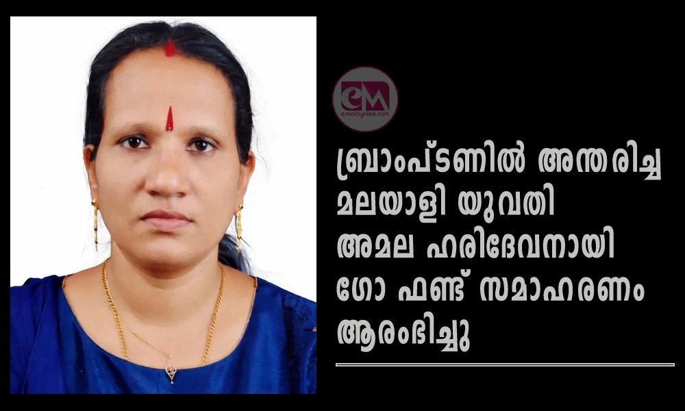 ബ്രാംപ്ടണ്: ബ്രാംപ്ടണില് അന്തരിച്ച മലയാളി യുവതി അമല ഹരിദേവനായി ഗോ ഫണ്ട് സമാഹരണം ആരംഭിച്ചു. ബ്രാംപ്റ്റണ് സിവിക് ഹോസ്പിറ്റലില് ചികിത്സയിലിരിക്കെയാണ് അന്ത്യം. അമലയുടെ ഭര്ത്താവ് നാട്ടിലാണ് കാനഡയില് വിദ്യാര്ത്ഥികളായ അമല് ദേവ്, ഹരികൃഷ്ണന് എന്നിവരാണ് മക്കള്.