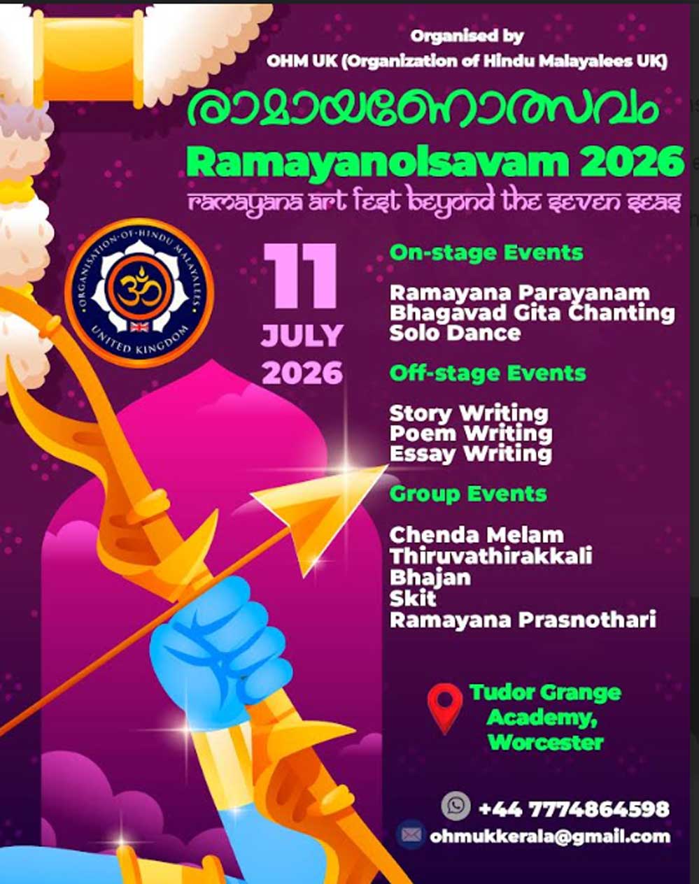 യുകെയിലെ വിവിധ ഹിന്ദു സമാജങ്ങളെ ഒരുമിപ്പിക്കുന്ന തരത്തിൽ ആദ്യമായാണ് OHM UK ഇത്തരമൊരു വിപുലമായ രാമായണോത്സവം സംഘടിപ്പിക്കുന്നത്. കുടുംബസൗഹൃദമായ ഏകദിന പരിപാടിയായി രാവിലെ 10 മണിയോടെ ആരംഭിക്കുന്ന ഉത്സവത്തിൽ വിവിധ പ്രായവിഭാഗങ്ങൾക്കായി സാഹിത്യ. കലാ മത്സരങ്ങൾ സോളോയും ഗ്രൂപ്പും അടിസ്ഥാനത്തിൽ നടത്തപ്പെടും.