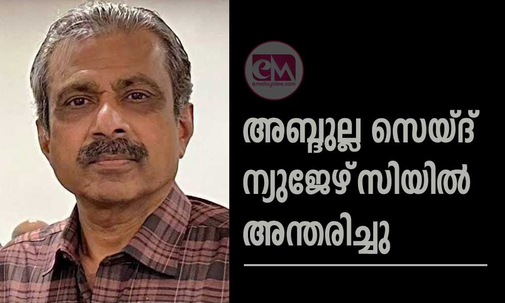 ഫ്ലെമിങ്ങ്ടൺ, ന്യു ജേഴ്സി: കേരള അസോസിയേഷൻ ഓഫ് ന്യു ജേഴ്സി (കെ.എ.എൻ.ജെ.), മലയാളി മുസ്ലിംസ് ഓഫ് ന്യു ജേഴ്സി (എം.എം.എൻ.ജെ), കരുണ ചാരിറ്റീസ് എന്നിവയിൽ സജീവമായിരുന്ന അബ്ദുല്ല സെയ്ദ് അന്തരിച്ചു.
