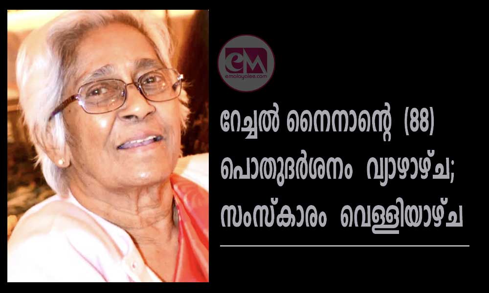 വാലി കോട്ടേജ്, ന്യൂയോര്ക്ക്: സി.എന്.ഐ സഭയുടെ മുന് ബിഷപ്പായിരുന്നു പരേതനായ ബിഷപ്പ് റൈറ്റ് റവ. ഡോ. അമ്പാട്ട് ജോര്ജ് നൈനാന്റെ ഭാര്യ അന്തരിച്ച റേച്ചല് നൈനാന്റെ (88) പൊതുദർശനം ഏപ്രിൽ 16 ന് വ്യാഴാഴ്ച. സംസ്കാരം ഏപ്രിൽ 17 ന് വെള്ളിയാഴ്ച.