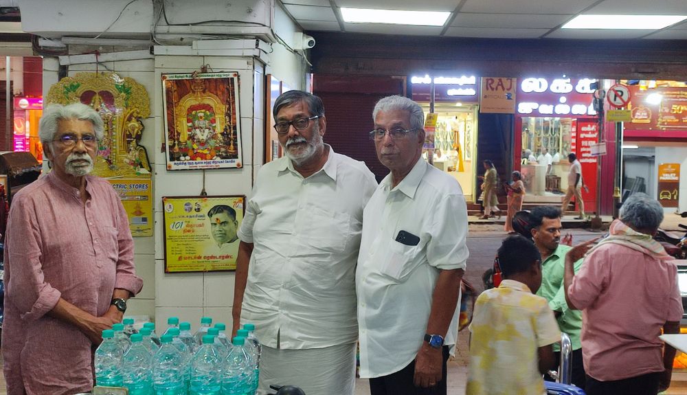 മോഡേൺ ഹോട്ടലിൽ സ്ഥാപകൻ സദാശിവന്റെ മകൻ സുന്ദരേശൻ, മലയാളി സമാജം സെക്രട്ടറി രാമദാസൻ, ലേഖകൻ