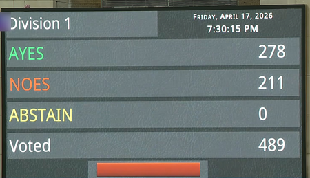 278 പേർ ബില്ലിനെ അനുകൂലിച്ച് വോട്ട് ചെയ്തപ്പോൾ 211 പേർ ബില്ലിനെ എതിർത്തു. മൂന്നിൽ രണ്ട് ഭൂരിപക്ഷം ലഭിക്കാത്തതിനെ തുടർന്നാണ് ബില്ല് പരാജയപ്പെട്ടത്. ആകെ 489 പേരാണ് വോട്ട് ചെയ്തത്.